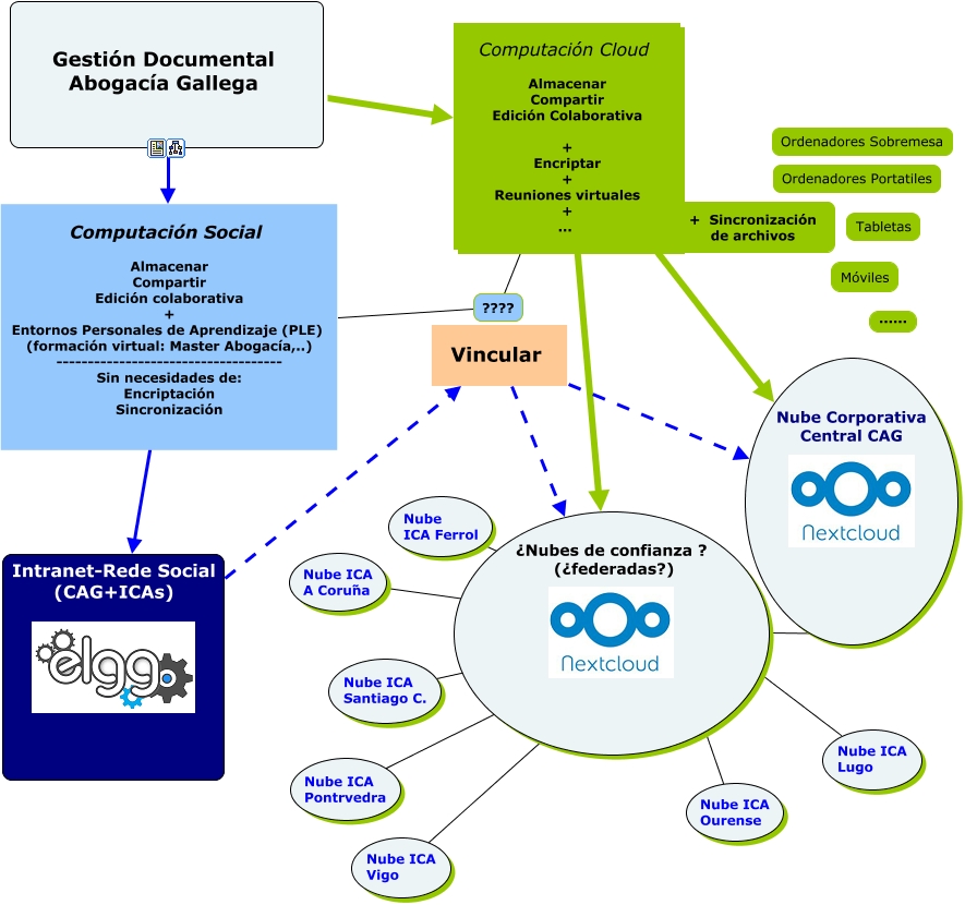 Este Cmap, tiene información relacionada con: CAG_CSocial&CCloud_es_EnlacDoble, Nube ICA Santiago C. Red ICAs Nube ICA Ferrol, Nube ICA A Coruña Red ICAs Nube ICA Ourense, Nube ICA A Coruña Red ICAs Nube ICA Ferrol, Nube ICA Santiago C. Red ICAs Nube ICA Ourense, Nube ICA Santiago C. Red ICAs Nube ICA Lugo, Gestión Documental Abogacía Gallega Computación Social Almacenar Compartir Edición colaborativa + Entornos Personales de Aprendizaje (PLE) (formación virtual: Master Abogacía,..) ------------------------------------ Sin necesidades de: Encriptación Sincronización ????, Intranet-Rede Social (CAG+ICAs) Vincular Nube Corporativa Central CAG, Nube ICA Santiago C. Red ICAs Nube ICA Ferrol, Nube ICA Santiago C. Red ICAs Nube ICA Ferrol, ¿Nubes de confianza ? (¿federadas?) Nube Corporativa Central CAG, Nube ICA A Coruña Red ICAs Nube ICA Pontrvedra, Nube ICA A Coruña Red ICAs Nube ICA Ferrol, Intranet-Rede Social (CAG+ICAs) Vincular ¿Nubes de confianza ? (¿federadas?), Nube ICA Santiago C. Red ICAs Nube ICA Pontrvedra, Nube ICA Ferrol Red ICAs Nube ICA Ourense, ???? Computación Cloud Almacenar Compartir Edición Colaborativa + Encriptar + Reuniones virtuales + ... Nube Corporativa Central CAG, Nube ICA Ferrol Red ICAs Nube ICA Pontrvedra, Nube ICA Ferrol Red ICAs Nube ICA Vigo, Gestión Documental Abogacía Gallega Computación Social Almacenar Compartir Edición colaborativa + Entornos Personales de Aprendizaje (PLE) (formación virtual: Master Abogacía,..) ------------------------------------ Sin necesidades de: Encriptación Sincronización Intranet-Rede Social (CAG+ICAs), Nube ICA Santiago C. Red ICAs Nube ICA Vigo