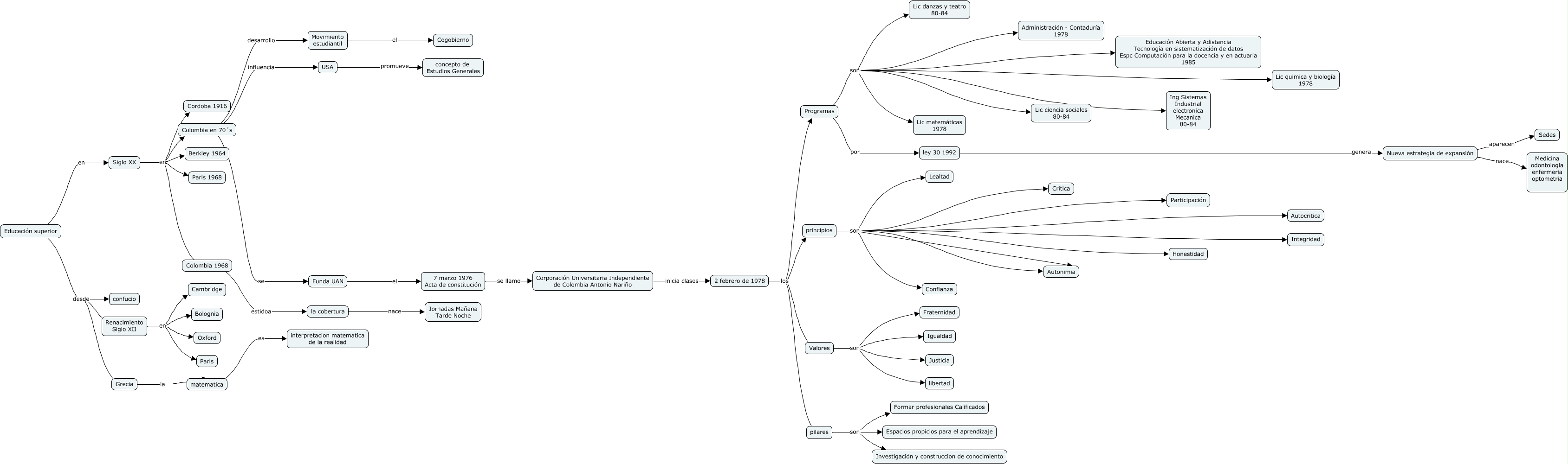 Este Cmap, tiene información relacionada con: Origen Universidad, principios son Autocritica, matematica es interpretacion matematica de la realidad, Grecia la matematica, Valores son Justicia, USA promueve concepto de Estudios Generales, principios son Honestidad, Siglo XX en Colombia en 70´s, 2 febrero de 1978 los Programas, Programas son Ing Sistemas Industrial electronica Mecanica 80-84, Siglo XX en Paris 1968, principios son Confianza, 2 febrero de 1978 los principios, Programas son Lic danzas y teatro 80-84, Renacimiento Siglo XII en Paris, Colombia 1968 estidoa la cobertura, Siglo XX en Berkley 1964, la cobertura nace Jornadas Mañana Tarde Noche, Valores son Igualdad, Programas son Lic quimica y biología 1978, Renacimiento Siglo XII en Cambridge