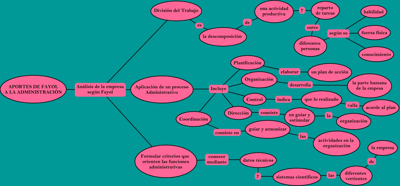 Este Cmap, tiene información relacionada con: APORTES DE FAYOL, Coordinación consiste en guiar y armonizar, diferentes personas según su conocimiento, sistemas científicos las diferentes vertientes, en guiar y estimular la organización, APORTES DE FAYOL A LA ADMINISTRACIÓN Análisis de la empresa según Fayol Formular criterios que orienten las funciones administrativas, Aplicación de un proceso Administrativo Incluye Control, APORTES DE FAYOL A LA ADMINISTRACIÓN Análisis de la empresa según Fayol Aplicación de un proceso Administrativo, diferentes personas según su habilidad, que lo realizado valla acorde al plan, Planificación elaborar un plan de acción, División del Trabajo es la descomposición, diferentes vertientes de la empresa, Aplicación de un proceso Administrativo Incluye Organización, guiar y armonizar las actividades en la organización, Aplicación de un proceso Administrativo Incluye Dirección, Aplicación de un proceso Administrativo Incluye Planificación, diferentes personas según su fuerza física, APORTES DE FAYOL A LA ADMINISTRACIÓN Análisis de la empresa según Fayol División del Trabajo, Formular criterios que orienten las funciones administrativas conocer mediante datos técnicos, Dirección consiste en guiar y estimular