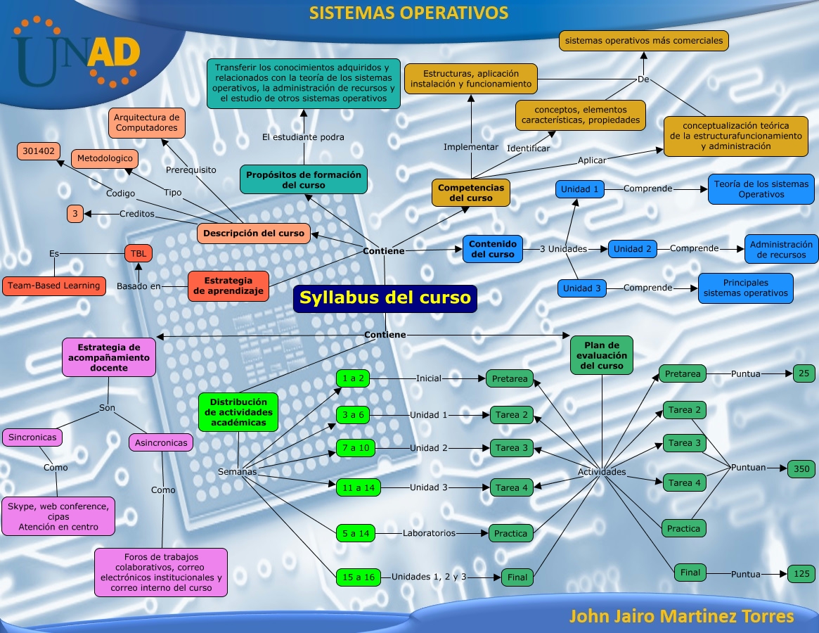 Este Cmap, tiene información relacionada con: Reconocimiento SO, Sincronicas Como Skype, web conference, cipas Atención en centro, conceptualización teórica de la estructurafuncionamiento y administración De sistemas operativos más comerciales, Syllabus del curso Contiene Contenido del curso, Pretarea Puntua 25, Distribución de actividades académicas Semanas 5 a 14, Unidad 2 Comprende Administración de recursos, Plan de evaluación del curso Actividades Tarea 3, Syllabus del curso Contiene Distribución de actividades académicas, Tarea 3 Puntuan 350, Descripción del curso Tipo Metodologico, Plan de evaluación del curso Actividades Pretarea, Distribución de actividades académicas Semanas 11 a 14, Distribución de actividades académicas Semanas 15 a 16, Syllabus del curso Contiene Estrategia de aprendizaje, 15 a 16 Unidades 1, 2 y 3 Final, TBL Es Team-Based Learning, Contenido del curso 3 Unidades Unidad 2, Competencias del curso Aplicar conceptualización teórica de la estructurafuncionamiento y administración, Plan de evaluación del curso Actividades Practica, Plan de evaluación del curso Actividades Pretarea
