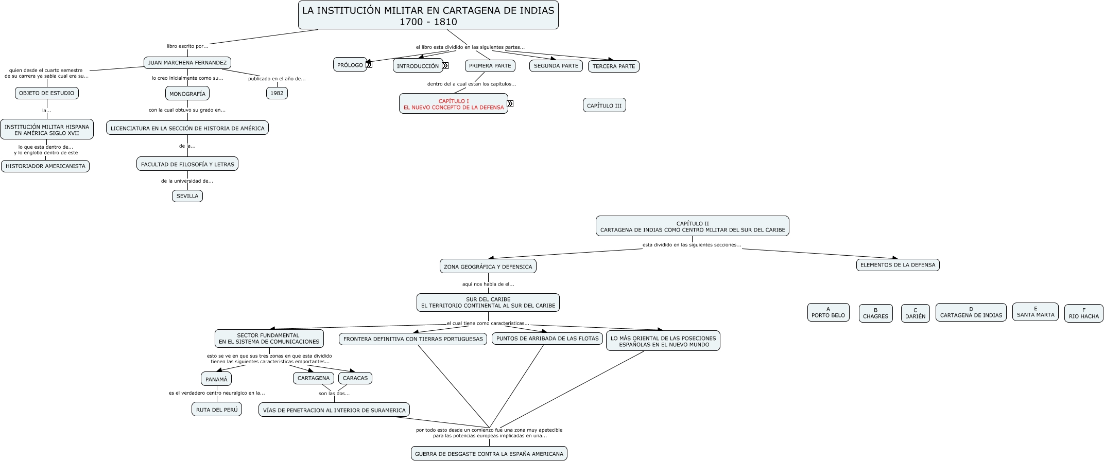 Este Cmap, tiene información relacionada con: LA INSTITUCIÓN MILITAR EN CARTAGENA DE IN DIAS 1700 - 1810, SISTEMA DEFENSIVO DE LAS INDIAS OCCIDENTALES el cual funcionó en un principio gracias también a otros factores como... EL MEDIO GEOGRÁFICO, ESTUDIA LAS DISTINTAS UNIDADES QUE SE DESTINAN A LA DEFENSA DE LA PLAZA estas son... COMPAÑÍAS DE ARTILLERÍA, LITORALES con todo esto no serán suficientes las... GUARNICIONES DE "CASTELLANOS", SIGLO XVI teniendo en mente... DOS PROYECTOS DE CANAL INTEROCEANICO, UNIVERSIDAD DE SEVILLA allí escogió el... y delimitó el... TEMA, CAMBIOS EN EL APARATO DEFENSIVO DEL CARIBE aparecen por primera vez... NUEVO TIPO DE FORTIFICACIONES, ZONA ESTRATÉGICA DEL CARIBE además contaba como protección de cada "vértice" con las siguientes líneas de defensa... EL FLANCO SUR, LA INSTITUCIÓN MILITAR EN CARTAGENA DE INDIAS 1700 - 1810 el libro esta dividido en las siguientes partes... INTRODUCCIÓN, COMERCIO sin embargo ni la creación de este laso o interacción entre lo militar y las ciudades sumado a el... lograron impedir la... INDEPENDENCIA, INFORME CONSTANTE SOBRE LA ESTRUCTURA MILITAR con estos se crean a partir de mediados de siglo una serie de... incluso se crean... PLANES TEÓRICOS MUY MINUCIOSOS DE DEFENSA PARA DETERMINADAS ISLAS O PLAZAS, PARECEN SIMULACIONES TEÓRICAS DE ATAQUES Y SU DEFENSA, HOSTIGAMIENTOS pero esto iría cambiando debido a... donde las potencias emergentes, como respuesta, apoyarían de manera decidida a los corsarios LAS GUERRAS DE FELIPE II, CUARTELES AL INTERIOR DE LAS CIUDADES todo esto creó un verdadero... EJÉRCITO REGULAR EN INDIAS, HUMANOS es tanto que... se pierden tantos enel viaje como en el asedio, EL MEDIO GEOGRÁFICO además otro problema es el... DESABASTECIMIENTO DE RECURSOS EN LAS ZONAS ATACADAS, LA BARRERA CENTROAMERICANA formada por una extensa línea de presidios... FUERTE DE PETEN-ITZÁ, ESPAÑA RECONOCE LAS POSESIONES INGLESAS EN LAS INDIAS OCCIDENTALES con lo cual se realiza la... aunque ya la poseía de facto POSESIÓN FORMAL DE INGLATERRA SOBRE JAMAICA, ZONAS ESTRATÉGICAS para poder construir estas se recurrió al... SITUADO, CAPITÁN SMITH apoyado por lo británicos en... 1779, TEMA plasmado en... INSTITUCIÓN MILITAR DE ESPAÑA EN INDIAS EN EL SIGLO XVIII, LO MÁS ORIENTAL DE LAS POSECIONES ESPAÑOLAS EN EL NUEVO MUNDO por todo esto desde un comienzo fue una zona muy apetecible para las potencias europeas implicadas en una... GUERRA DE DESGASTE CONTRA LA ESPAÑA AMERICANA