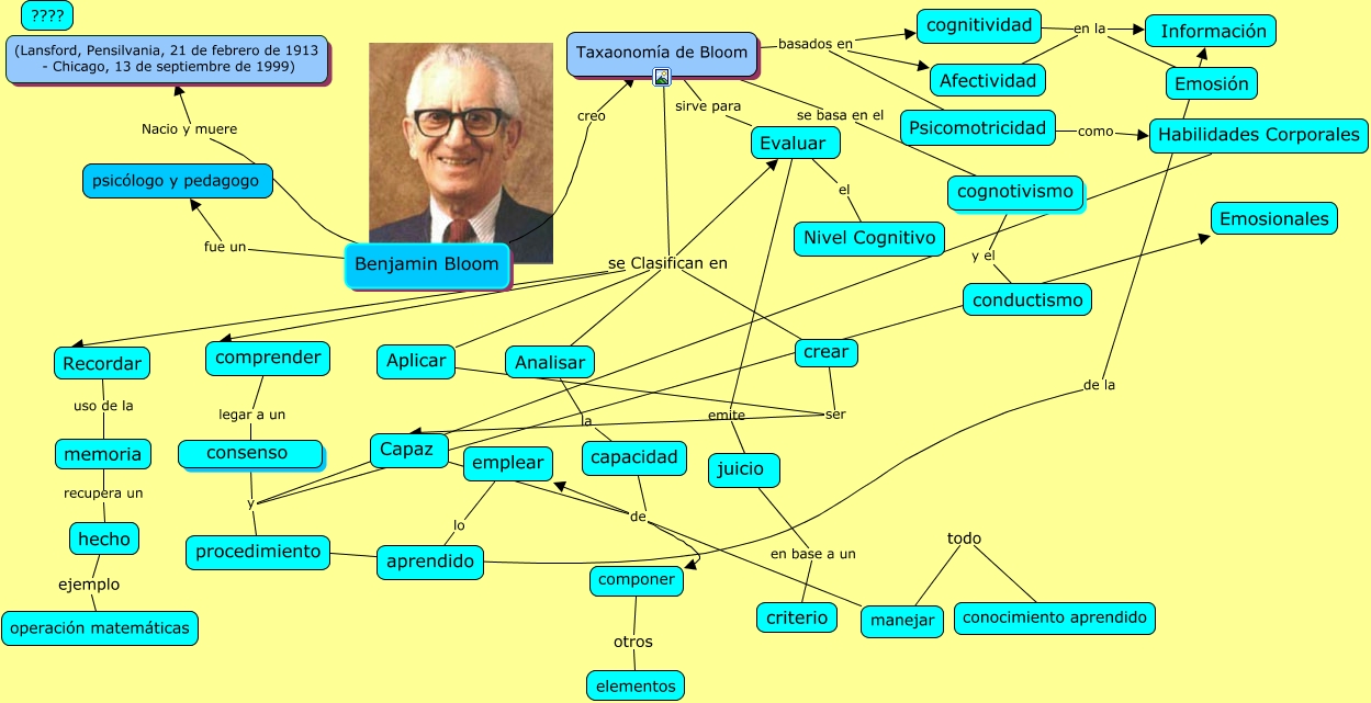Este Cmap, tiene información relacionada con: definicion de taxonomia, capacidad de emplear, manejar todo conocimiento aprendido, Taxaonomía de Bloom se Clasifican en Aplicar, Evaluar el Nivel Cognitivo, componer otros elementos, Recordar uso de la memoria, Afectividad en la Emosión, cognotivismo y el conductismo, Taxaonomía de Bloom se basa en el cognotivismo, Taxaonomía de Bloom se Clasifican en comprender, Taxaonomía de Bloom se Clasifican en Recordar, juicio en base a un criterio, cognitividad en la Información, Taxaonomía de Bloom se Clasifican en Analisar, Taxaonomía de Bloom se Clasifican en Evaluar, hecho ejemplo operación matemáticas, capacidad de manejar, Analisar la capacidad, Capaz de emplear, Afectividad en la Información