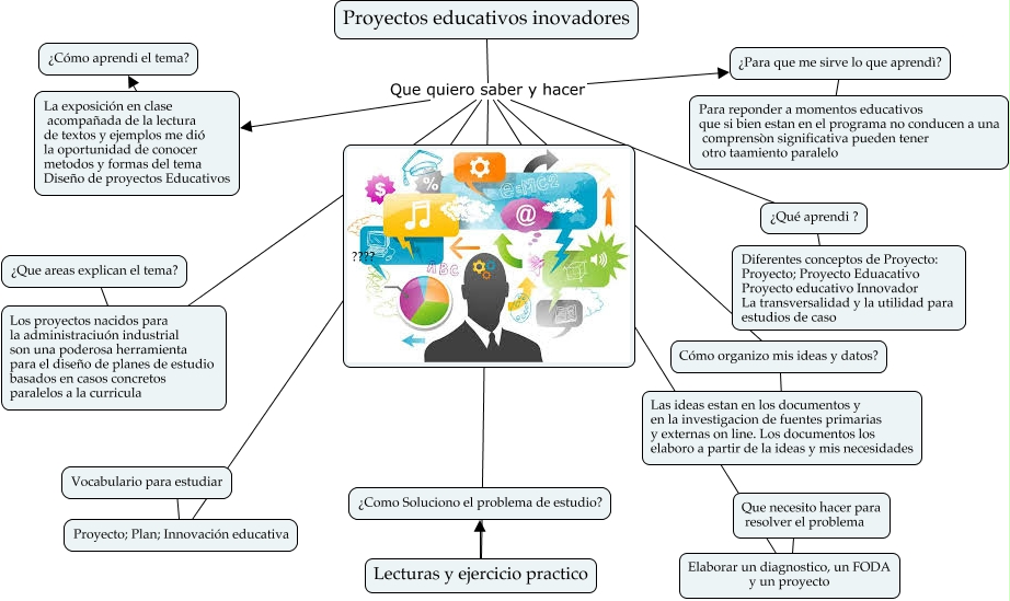 Este Cmap, tiene información relacionada con: Metacognicion Proyectos educativos inovadores, Proyectos educativos inovadores Que quiero saber y hacer Elaborar un diagnostico, un FODA y un proyecto, Proyectos educativos inovadores Que quiero saber y hacer ¿Qué aprendi ?, La exposición en clase acompañada de la lectura de textos y ejemplos me dió la oportunidad de conocer metodos y formas del tema Diseño de proyectos Educativos ???? ¿Cómo aprendi el tema?, Cómo organizo mis ideas y datos? ???? Las ideas estan en los documentos y en la investigacion de fuentes primarias y externas on line. Los documentos los elaboro a partir de la ideas y mis necesidades, Proyectos educativos inovadores Que quiero saber y hacer Cómo organizo mis ideas y datos?, Proyecto; Plan; Innovación educativa ???? Vocabulario para estudiar, ¿Qué aprendi ? ???? Diferentes conceptos de Proyecto: Proyecto; Proyecto Eduacativo Proyecto educativo Innovador La transversalidad y la utilidad para estudios de caso, Proyectos educativos inovadores Que quiero saber y hacer Proyecto; Plan; Innovación educativa, Lecturas y ejercicio practico ???? ¿Como Soluciono el problema de estudio?, Proyectos educativos inovadores Que quiero saber y hacer La exposición en clase acompañada de la lectura de textos y ejemplos me dió la oportunidad de conocer metodos y formas del tema Diseño de proyectos Educativos, ¿Para que me sirve lo que aprendì? ???? Para reponder a momentos educativos que si bien estan en el programa no conducen a una comprensòn significativa pueden tener otro taamiento paralelo, Proyectos educativos inovadores Que quiero saber y hacer ¿Para que me sirve lo que aprendì?, Proyectos educativos inovadores Que quiero saber y hacer Los proyectos nacidos para la administraciuón industrial son una poderosa herramienta para el diseño de planes de estudio basados en casos concretos paralelos a la curricula, Proyectos educativos inovadores Que quiero saber y hacer Lecturas y ejercicio practico, ¿Que areas explican el tema? ???? Los proyectos nacidos para la administraciuón industrial son una poderosa herramienta para el diseño de planes de estudio basados en casos concretos paralelos a la curricula, Elaborar un diagnostico, un FODA y un proyecto ???? Que necesito hacer para resolver el problema