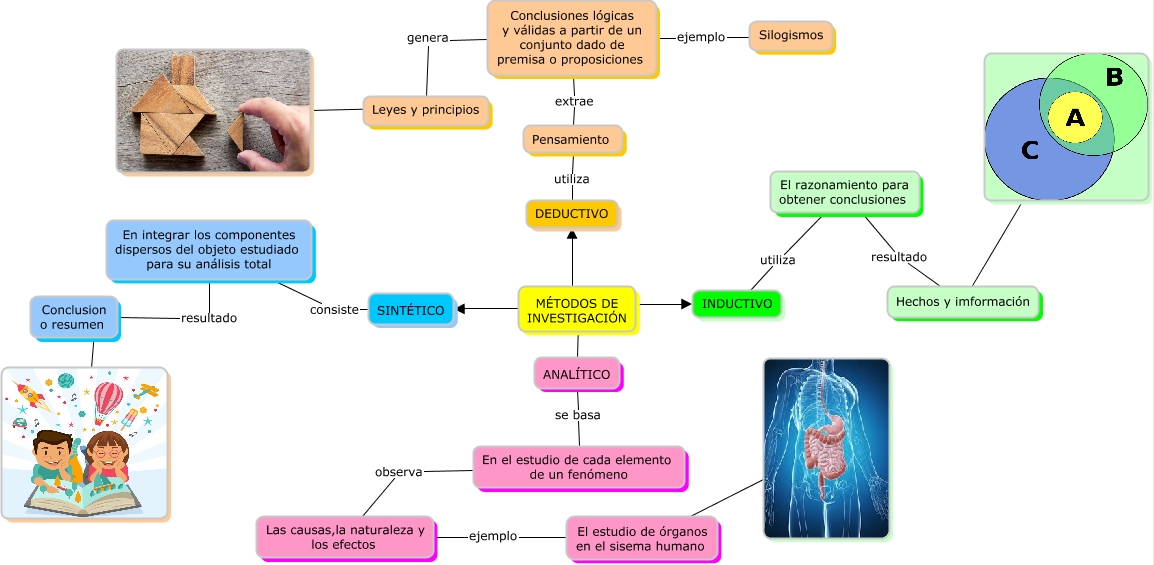 Este Cmap, tiene información relacionada con: A2..Noa.Mishell.MetodologiadelaInvestigación, MÉTODOS DE INVESTIGACIÓN ???? SINTÉTICO, En integrar los componentes dispersos del objeto estudiado para su análisis total resultado Conclusion o resumen, Conclusiones lógicas y válidas a partir de un conjunto dado de premisa o proposiciones genera Leyes y principios, DEDUCTIVO utiliza Pensamiento, ANALÍTICO se basa En el estudio de cada elemento de un fenómeno, MÉTODOS DE INVESTIGACIÓN ???? ANALÍTICO, Leyes y principios ????, Hechos y imformación ????, MÉTODOS DE INVESTIGACIÓN ???? DEDUCTIVO, El estudio de órganos en el sisema humano ????, Conclusion o resumen ????, SINTÉTICO consiste En integrar los componentes dispersos del objeto estudiado para su análisis total, INDUCTIVO utiliza El razonamiento para obtener conclusiones, Pensamiento extrae Conclusiones lógicas y válidas a partir de un conjunto dado de premisa o proposiciones, El razonamiento para obtener conclusiones resultado Hechos y imformación, MÉTODOS DE INVESTIGACIÓN ???? INDUCTIVO, Las causas,la naturaleza y los efectos ejemplo El estudio de órganos en el sisema humano, Conclusiones lógicas y válidas a partir de un conjunto dado de premisa o proposiciones ejemplo Silogismos, En el estudio de cada elemento de un fenómeno observa Las causas,la naturaleza y los efectos