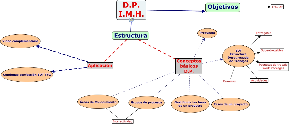 Este Cmap, tiene información relacionada con: Sesion 1, Aplicación Comienzo confección EDT TFG, EDT Estructura Desagregada de Trabajos Subentregables, Grupos de procesos Interactividad, D.P. I.M.H. Estructura, EDT Estructura Desagregada de Trabajos Actividades, Conceptos básicos D.P. Grupos de procesos, Conceptos básicos D.P. Áreas de Conocimiento, Estructura Aplicación, Conceptos básicos D.P. EDT Estructura Desagregada de Trabajos, Estructura Conceptos básicos D.P., Aplicación Vídeo complementario, Objetivos TFG/DP, Áreas de Conocimiento Interactividad, Conceptos básicos D.P. Gestión de las fases de un proyecto, EDT Estructura Desagregada de Trabajos Resumen, EDT Estructura Desagregada de Trabajos Entregable, Conceptos básicos D.P. Fases de un proyecto, EDT Estructura Desagregada de Trabajos Paquetes de trabajo Work Packages, Conceptos básicos D.P. Prroyecto, D.P. I.M.H. Objetivos