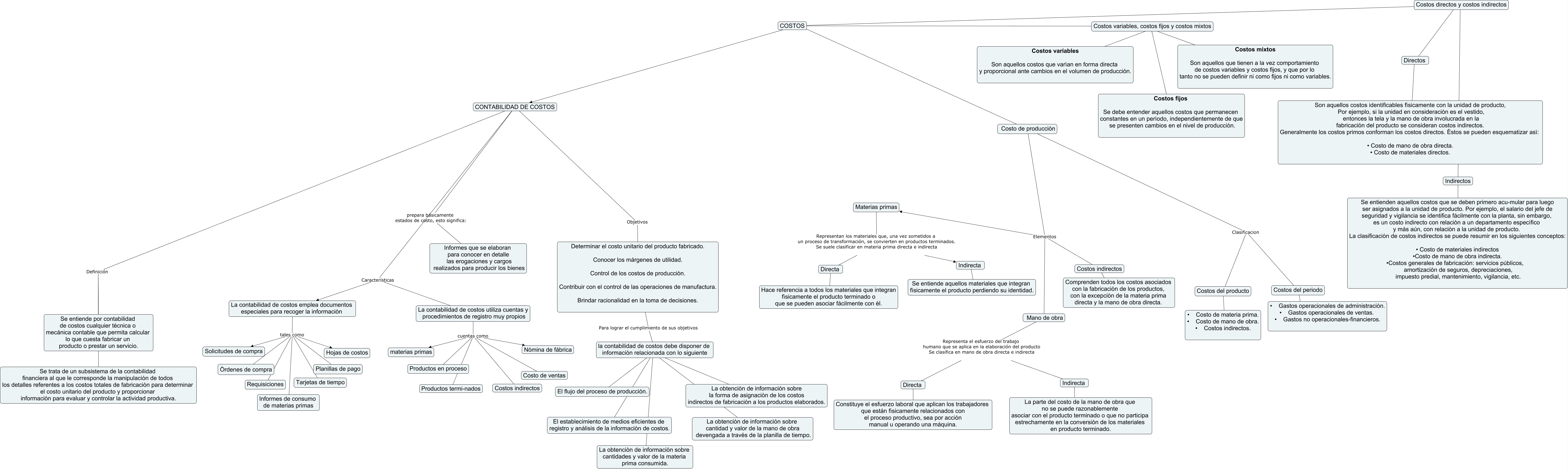 Este Cmap, tiene información relacionada con: costos edwin, la contabilidad de costos debe disponer de información relacionada con lo siguiente ???? El flujo del proceso de producción., Costo de producción Elementos Materias primas, CONTABILIDAD DE COSTOS Definición Se trata de un subsistema de la contabilidad financiera al que le corresponde la manipulación de todos los detalles referentes a los costos totales de fabricación para determinar el costo unitario del producto y proporcionar información para evaluar y controlar la actividad productiva., la contabilidad de costos debe disponer de información relacionada con lo siguiente ???? La obtención de información sobre la forma de asignación de los costos indirectos de fabricación a los productos elaborados., Costo de producción Elementos Costos indirectos, Indirecta ???? La parte del costo de la mano de obra que no se puede razonablemente asociar con el producto terminado o que no participa estrechamente en la conversión de los materiales en producto terminado., Costos variables, costos fijos y costos mixtos ???? Costos fijos Se debe entender aquellos costos que permanecen constantes en un período, independientemente de que se presenten cambios en el nivel de producción., COSTOS ???? CONTABILIDAD DE COSTOS, La contabilidad de costos utiliza cuentas y procedimientos de registro muy propios cuentas como materias primas, Costos indirectos ???? Comprenden todos los costos asociados con la fabricación de los productos, con la excepción de la materia prima directa y la mano de obra directa., La contabilidad de costos emplea documentos especiales para recoger la información tales como Solicitudes de compra, Costos directos y costos indirectos ???? Directos, Indirectos ???? Se entienden aquellos costos que se deben primero acu-mular para luego ser asignados a la unidad de producto. Por ejemplo, el salario del jefe de seguridad y vigilancia se identifica fácilmente con la planta, sin embargo, es un costo indirecto con relación a un departamento específico y más aún, con relación a la unidad de producto. La clasificación de costos indirectos se puede resumir en los siguientes conceptos: • Costo de materiales indirectos •Costo de mano de obra indirecta. •Costos generales de fabricación: servicios públicos, amortización de seguros, depreciaciones, impuesto predial, mantenimiento, vigilancia, etc., Costos directos y costos indirectos ???? Indirectos, Materias primas Representan los materiales que, una vez sometidos a un proceso de transformación, se convierten en productos terminados. Se suele clasificar en materia prima directa e indirecta Directa, COSTOS ???? Costos directos y costos indirectos, Determinar el costo unitario del producto fabricado. Conocer los márgenes de utilidad. Control de los costos de producción. Contribuir con el control de las operaciones de manufactura. Brindar racionalidad en la toma de decisiones. Para lograr el cumplimiento de sus objetivos la contabilidad de costos debe disponer de información relacionada con lo siguiente, La contabilidad de costos emplea documentos especiales para recoger la información tales como Planillas de pago, Costos del periodo ???? • Gastos operacionales de administración. • Gastos operacionales de ventas. • Gastos no operacionales-financieros., Mano de obra Representa el esfuerzo del trabajo humano que se aplica en la elaboración del producto Se clasifica en mano de obra directa e indirecta Directa