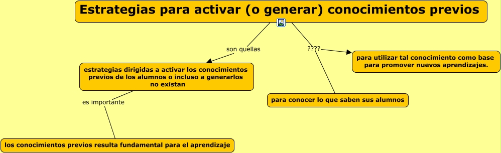 Este Cmap, tiene información relacionada con: conocimientos previos, estrategias dirigidas a activar los conocimientos previos de los alumnos o incluso a generarlos no existan es importante los conocimientos previos resulta fundamental para el aprendizaje, Estrategias para activar (o generar) conocimientos previos ???? para conocer lo que saben sus alumnos, Estrategias para activar (o generar) conocimientos previos ???? para utilizar tal conocimiento como base para promover nuevos aprendizajes., Estrategias para activar (o generar) conocimientos previos son quellas estrategias dirigidas a activar los conocimientos previos de los alumnos o incluso a generarlos no existan