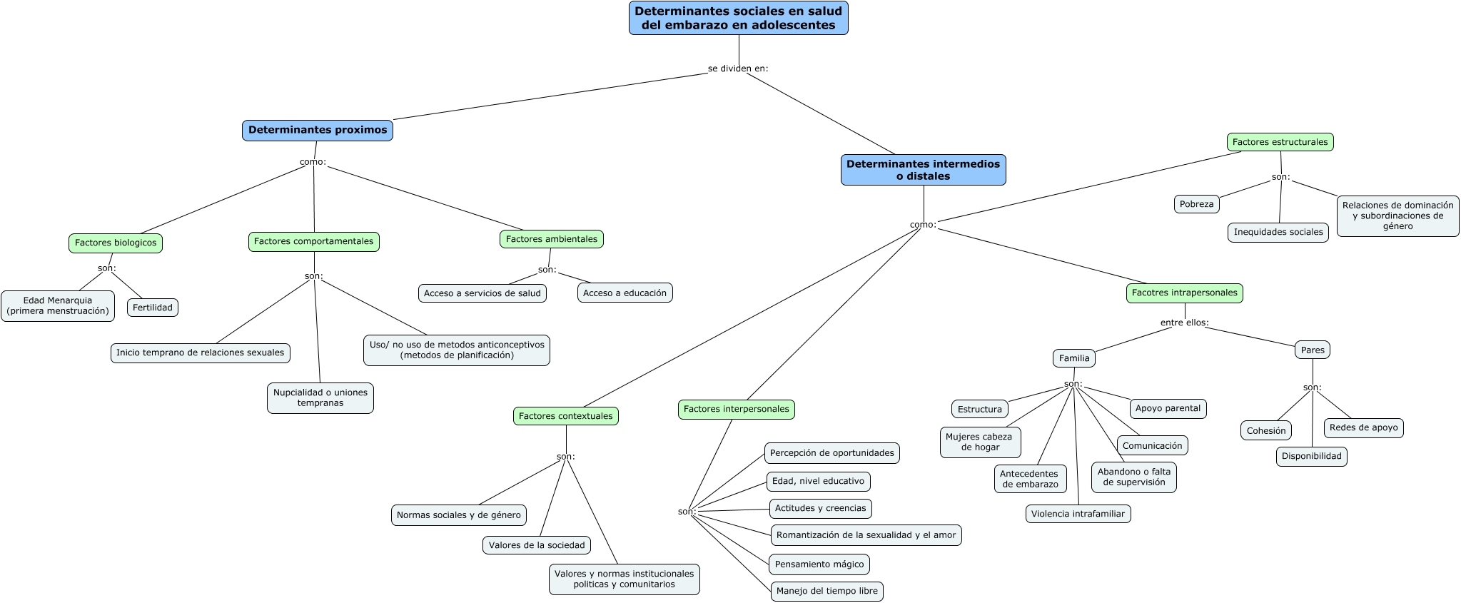 Este Cmap, tiene información relacionada con: Embarazo en adolescentes, Factores biologicos son: Edad Menarquia (primera menstruación), Pares son: Cohesión, Factores comportamentales son: Nupcialidad o uniones tempranas, Factores interpersonales son: Edad, nivel educativo, Factores contextuales son: Valores y normas institucionales politicas y comunitarios, Determinantes intermedios o distales como: Factores estructurales, Familia son: Abandono o falta de supervisión, Pares son: Disponibilidad, Facotres intrapersonales entre ellos: Familia, Pares son: Redes de apoyo, Factores estructurales son: Inequidades sociales, Factores interpersonales son: Pensamiento mágico, Familia son: Violencia intrafamiliar, Familia son: Apoyo parental, Determinantes proximos como: Factores biologicos, Familia son: Antecedentes de embarazo, Familia son: Mujeres cabeza de hogar, Familia son: Comunicación, Factores estructurales son: Pobreza, Factores comportamentales son: Uso/ no uso de metodos anticonceptivos (metodos de planificación)
