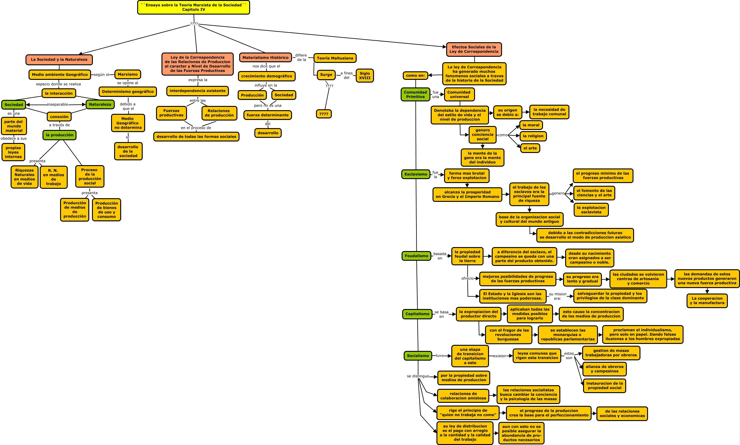 Este Cmap, tiene información relacionada con: Mapa Conceptual, Feudalismo Capitalismo, las demandas de estos nuevos productos generaron una nueva fuerza productiva La cooperacion y la manufactura, como en: Comunidad Primitiva, leyes comunes que rigen esta transicion estas son alianza de obreros y campesinos, el progreso de la produccion crea la base para el perfeccionamiento ???? de las relaciones sociales y economicas, alcanzo la prosperidad en Grecia y el Imperio Romano el trabajo de los esclavos era la principal fuente de riqueza, Denotaba la dependencia del estilo de vida y el nivel de produccion ???? su origen se debio a:, Proceso de la producción social presenta Producción de medios de producción, la interacción Sociedad, interdependencia existente entre las Relaciones de producción, genero conciencia social como la moral, la expropiacion del productor directo aplicaban todas las medidas posibles para lograrlo, Teoría Maltusiana Surge, la expropiacion del productor directo con el fragor de las revoluciones burguesas, la propiedad feudal sobre la tierra ofrecio El Estado y la Iglesia son las instituciones mas poderosas., Naturaleza conexión, forma mas brutal y feroz explotacion alcanzo la prosperidad en Grecia y el Imperio Romano, aplicaban todas las medidas posibles para lograrlo ???? esto causo la concentracion de los medios de produccion, Producción pero no es una Sociedad, crecimiento demográfico influye en la Producción