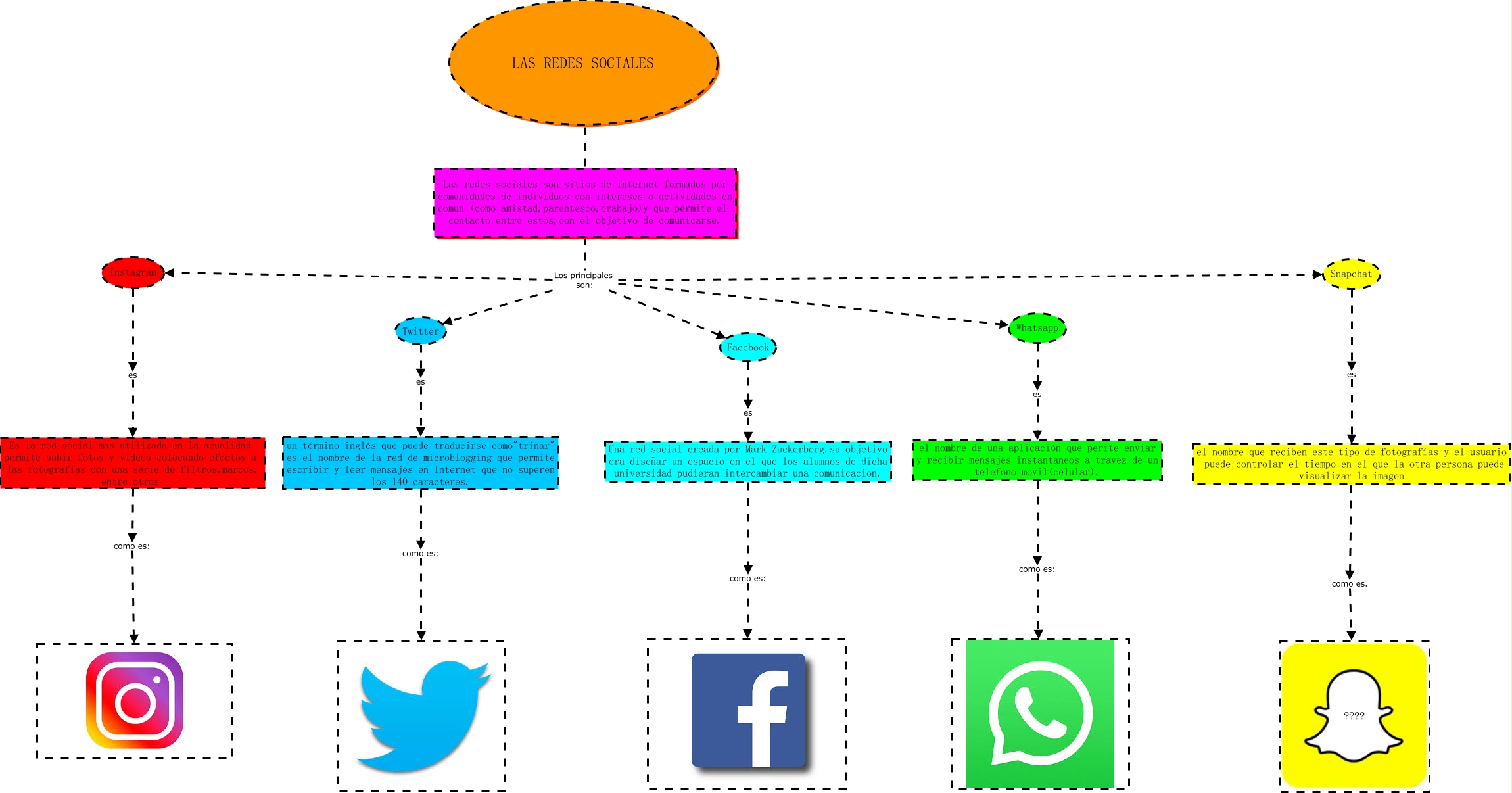 Este Cmap, tiene información relacionada con: computacion cmaptools (2), Las redes sociales son sitios de internet formados por comunidades de individuos con intereses o actividades en comun (como amistad,parentesco,trabajo)y que permite el contacto entre estos,con el objetivo de comunicarse. Los principales son: Facebook, Es la red social mas utilizada en la acualidad permite subir fotos y videos colocando efectos a las fotografias con una serie de filtros,marcos, entre otros como es:, Whatsapp es el nombre de una aplicación que perite enviar y recibir mensajes instantaneos a travez de un telefono movil(celular)., Twitter es un término inglés que puede traducirse como"trinar" es el nombre de la red de microblogging que permite escribir y leer mensajes en Internet que no superen los 140 caracteres., Instagram es Es la red social mas utilizada en la acualidad permite subir fotos y videos colocando efectos a las fotografias con una serie de filtros,marcos, entre otros, Facebook es Una red social creada por Mark Zuckerberg.su objetivo era diseñar un espacio en el que los alumnos de dicha universidad pudieran intercambiar una comunicacion., Snapchat es el nombre que reciben este tipo de fotografías y el usuario puede controlar el tiempo en el que la otra persona puede visualizar la imagen, LAS REDES SOCIALES son: Las redes sociales son sitios de internet formados por comunidades de individuos con intereses o actividades en comun (como amistad,parentesco,trabajo)y que permite el contacto entre estos,con el objetivo de comunicarse., Las redes sociales son sitios de internet formados por comunidades de individuos con intereses o actividades en comun (como amistad,parentesco,trabajo)y que permite el contacto entre estos,con el objetivo de comunicarse. Los principales son: Twitter, Las redes sociales son sitios de internet formados por comunidades de individuos con intereses o actividades en comun (como amistad,parentesco,trabajo)y que permite el contacto entre estos,con el objetivo de comunicarse. Los principales son: Instagram, un término inglés que puede traducirse como"trinar" es el nombre de la red de microblogging que permite escribir y leer mensajes en Internet que no superen los 140 caracteres. como es:, Una red social creada por Mark Zuckerberg.su objetivo era diseñar un espacio en el que los alumnos de dicha universidad pudieran intercambiar una comunicacion. como es:, el nombre que reciben este tipo de fotografías y el usuario puede controlar el tiempo en el que la otra persona puede visualizar la imagen como es. ????, el nombre de una aplicación que perite enviar y recibir mensajes instantaneos a travez de un telefono movil(celular). como es:, Las redes sociales son sitios de internet formados por comunidades de individuos con intereses o actividades en comun (como amistad,parentesco,trabajo)y que permite el contacto entre estos,con el objetivo de comunicarse. Los principales son: Snapchat, Las redes sociales son sitios de internet formados por comunidades de individuos con intereses o actividades en comun (como amistad,parentesco,trabajo)y que permite el contacto entre estos,con el objetivo de comunicarse. Los principales son: Whatsapp