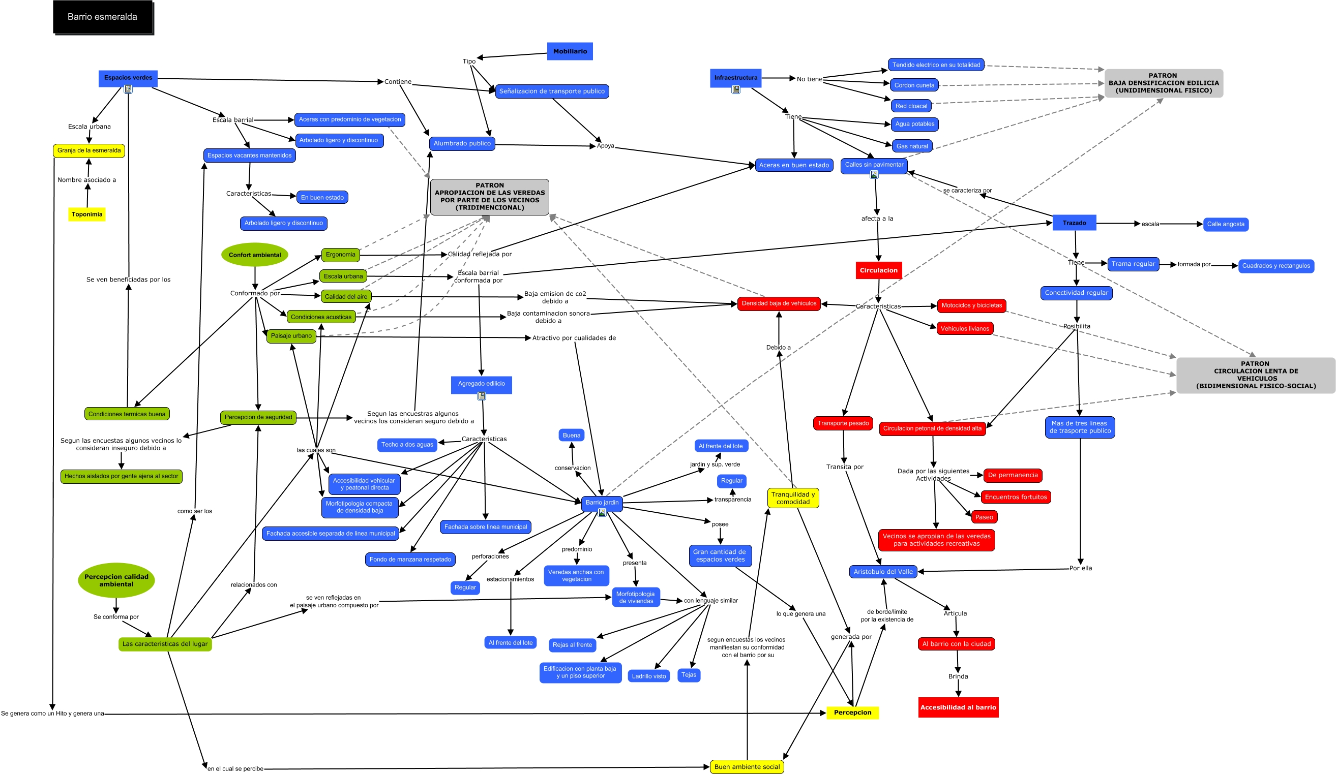 Este Cmap, tiene información relacionada con: Barrio esmeralda grupo b ult, Agregado edilicio Caracteristicas Morfotipologia compacta de densidad baja, Espacios vacantes mantenidos Caracteristicas En buen estado, Infraestructura No tiene Tendido electrico en su totalidad, Espacios verdes Escala barrial Aceras con predominio de vegetacion, Las caracteristicas del lugar las cuales son Barrio jardin, Las caracteristicas del lugar relacionados con Percepcion de seguridad, Alumbrado publico Apoya Aceras en buen estado, Calles sin pavimentar ???? PATRON CIRCULACION LENTA DE VEHICULOS (BIDIMENSIONAL FISICO-SOCIAL), Circulacion Caracteristicas Motociclos y bicicletas, Trama regular formada por Cuadrados y rectangulos, Mobiliario Tipo Señalizacion de transporte publico, Confort ambiental Conformado por Escala urbana, Circulacion petonal de densidad alta Dada por las siguientes Actividades Paseo, Morfotipologia de viviendas con lenguaje similar Tejas, Espacios verdes Escala barrial Espacios vacantes mantenidos, Confort ambiental Conformado por Percepcion de seguridad, Ergonomia Calidad reflejada por Aceras en buen estado, Trazado se caracteriza por Calles sin pavimentar, Agregado edilicio Caracteristicas Barrio jardin, Percepcion de seguridad Segun las encuestras algunos vecinos los consideran seguro debido a Alumbrado publico