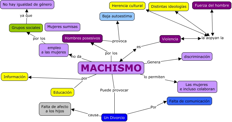 Este Cmap, tiene información relacionada con: MACHISMO, MACHISMO Puede provocar Un Divorcio, empleo a las mujeres por los Grupos sociales, MACHISMO Genera discriminación, MACHISMO por Información, MACHISMO por los Hombres posesivos, Violencia la aopyan la Fuerza del hombre, MACHISMO por Educación, MACHISMO lo permiten Las mujeres e incluso colaboran, Un Divorcio Por Falta de comunicación, MACHISMO no da empleo a las mujeres, Violencia la aopyan la Distintas ideologías, Grupos sociales ya que No hay igualdad de género, Violencia la aopyan la Herencia cultural, Un Divorcio causa Falta de afecto a los hijos, Hombres posesivos provoca Baja autoestima