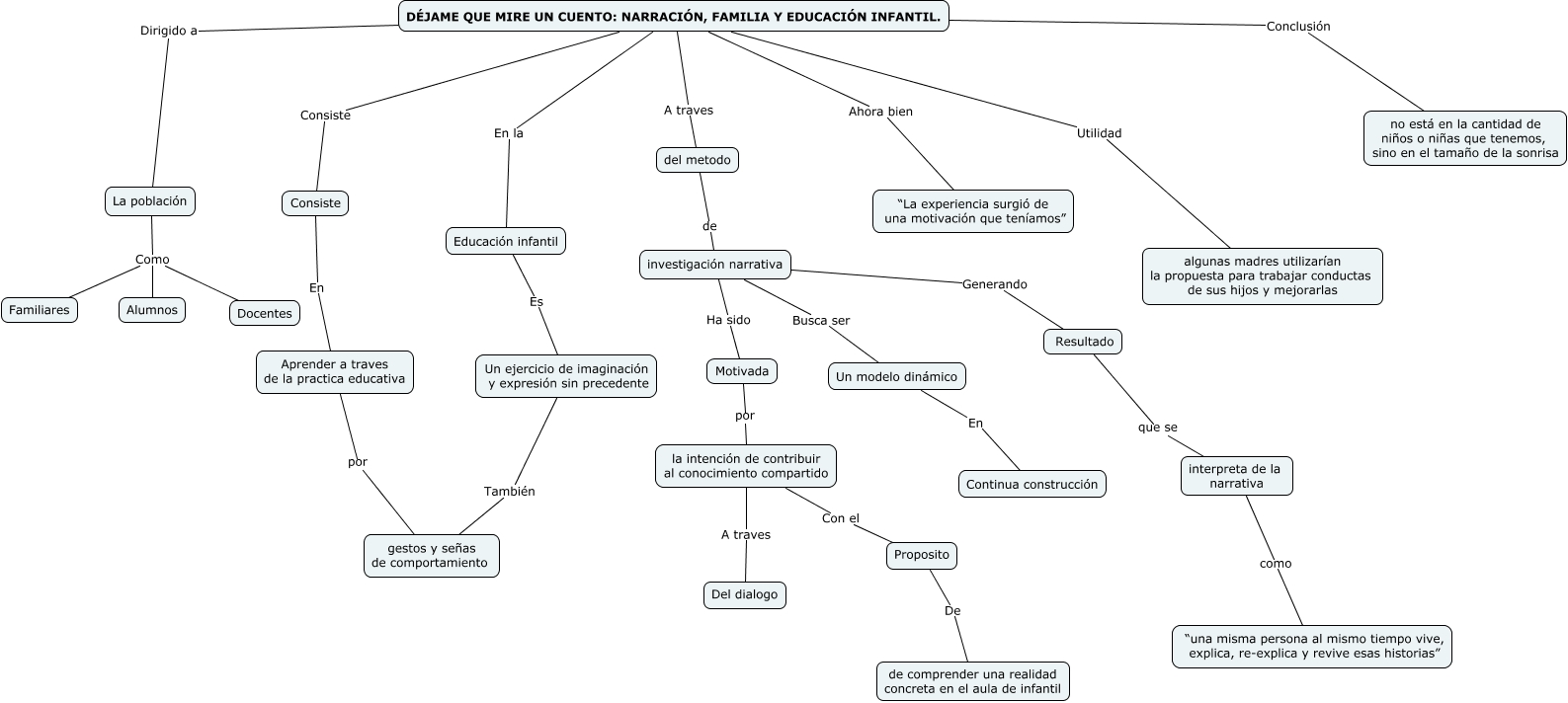 Este Cmap, tiene información relacionada con: DEJAME QUE MIRE UN CUENTO NARRACIÓN FAMILIA Y EDUCACIÓN INFANTIL UNA INVESTIGACIÓN NARRATIVA