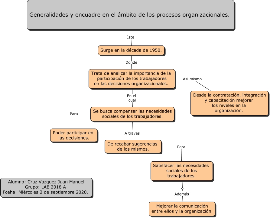 Este Cmap, tiene información relacionada con: subunidad 1.1.1 CRUZ VAZQUEZ JUAN MANUEL 2_SEP_2020, De recabar sugerencias de los mismos. Para Satisfacer las necesidades sociales de los trabajadores., Surge en la década de 1950. Donde Trata de analizar la importancia de la participación de los trabajadores en las decisiones organizacionales., Trata de analizar la importancia de la participación de los trabajadores en las decisiones organizacionales. Asi mismo Desde la contratación, integración y capacitación mejorar los niveles en la organización., Satisfacer las necesidades sociales de los trabajadores. Y Además Mejorar la comunicación entre ellos y la organización., Se busca compensar las necesidades sociales de los trabajadores. Para Poder participar en las decisiones., Se busca compensar las necesidades sociales de los trabajadores. A traves De recabar sugerencias de los mismos., Trata de analizar la importancia de la participación de los trabajadores en las decisiones organizacionales. En el cual Se busca compensar las necesidades sociales de los trabajadores., Generalidades y encuadre en el ámbito de los procesos organizacionales. Éste Surge en la década de 1950.
