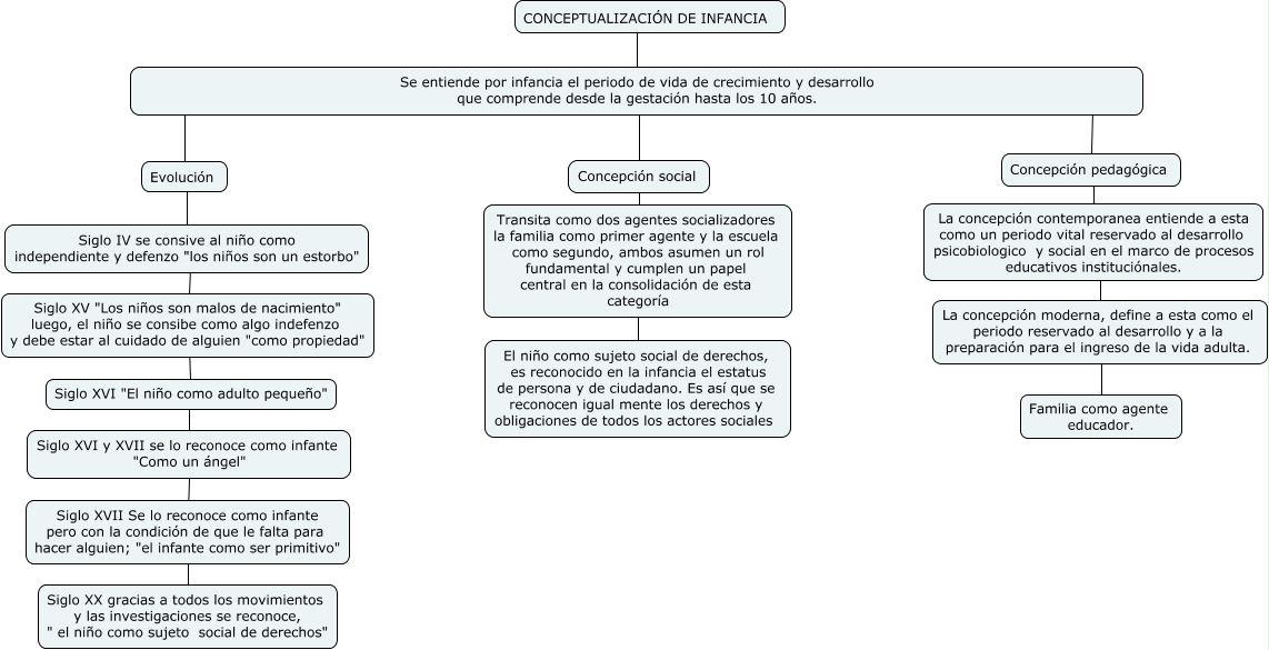 Este Cmap, tiene información relacionada con: concepto de infancia, Siglo XVI y XVII se lo reconoce como infante "Como un ángel" ???? Siglo XX gracias a todos los movimientos y las investigaciones se reconoce, " el niño como sujeto social de derechos", Se entiende por infancia el periodo de vida de crecimiento y desarrollo que comprende desde la gestación hasta los 10 años. ???? Concepción social, Se entiende por infancia el periodo de vida de crecimiento y desarrollo que comprende desde la gestación hasta los 10 años. ???? Evolución, Siglo XVI "El niño como adulto pequeño" ???? Siglo XVI y XVII se lo reconoce como infante "Como un ángel", Transita como dos agentes socializadores la familia como primer agente y la escuela como segundo, ambos asumen un rol fundamental y cumplen un papel central en la consolidación de esta categoría ???? El niño como sujeto social de derechos, es reconocido en la infancia el estatus de persona y de ciudadano. Es así que se reconocen igual mente los derechos y obligaciones de todos los actores sociales, Siglo XV "Los niños son malos de nacimiento" luego, el niño se consibe como algo indefenzo y debe estar al cuidado de alguien "como propiedad" ???? Siglo XVI "El niño como adulto pequeño", Concepción social ???? Transita como dos agentes socializadores la familia como primer agente y la escuela como segundo, ambos asumen un rol fundamental y cumplen un papel central en la consolidación de esta categoría, Evolución ???? Siglo IV se consive al niño como independiente y defenzo "los niños son un estorbo", CONCEPTUALIZACIÓN DE INFANCIA ???? Se entiende por infancia el periodo de vida de crecimiento y desarrollo que comprende desde la gestación hasta los 10 años., La concepción contemporanea entiende a esta como un periodo vital reservado al desarrollo psicobiologico y social en el marco de procesos educativos instituciónales. ???? La concepción moderna, define a esta como el periodo reservado al desarrollo y a la preparación para el ingreso de la vida adulta., Siglo IV se consive al niño como independiente y defenzo "los niños son un estorbo" ???? Siglo XV "Los niños son malos de nacimiento" luego, el niño se consibe como algo indefenzo y debe estar al cuidado de alguien "como propiedad", La concepción moderna, define a esta como el periodo reservado al desarrollo y a la preparación para el ingreso de la vida adulta. ???? Familia como agente educador., Concepción pedagógica ???? La concepción contemporanea entiende a esta como un periodo vital reservado al desarrollo psicobiologico y social en el marco de procesos educativos instituciónales., Se entiende por infancia el periodo de vida de crecimiento y desarrollo que comprende desde la gestación hasta los 10 años. ???? Concepción pedagógica, Siglo XVI y XVII se lo reconoce como infante "Como un ángel" ???? Siglo XVII Se lo reconoce como infante pero con la condición de que le falta para hacer alguien; "el infante como ser primitivo"