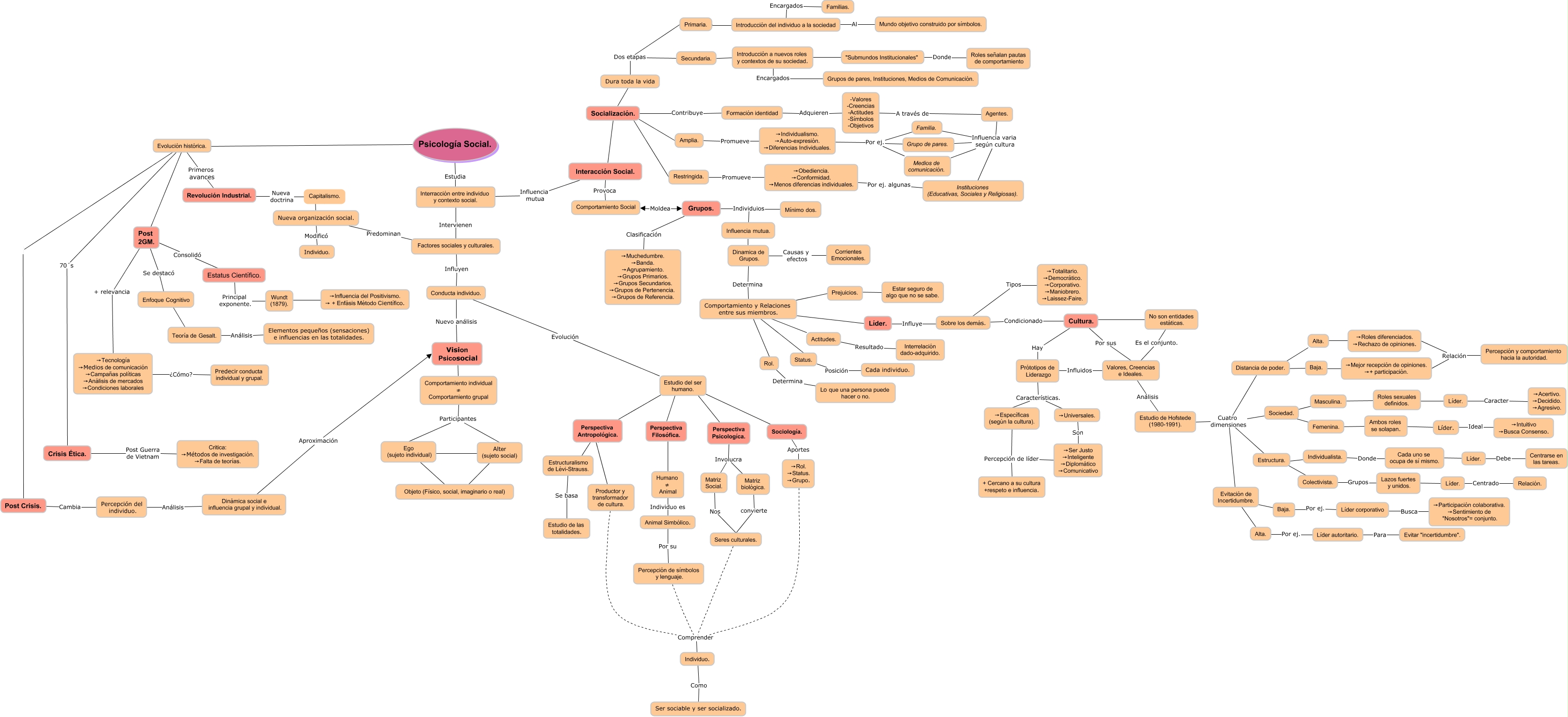 Este Cmap, tiene información relacionada con: Psicología Social 2.0, Cultura. ???? No son entidades estáticas., Interracción entre individuo y contexto social. Intervienen Factores sociales y culturales., Dura toda la vida Dos etapas Secundaria., Agentes. Influencia varia según cultura Medios de comunicación., →Obediencia. →Conformidad. →Menos diferencias individuales. Por ej. algunas Instituciones (Educativas, Sociales y Religiosas)., Estudio del ser humano. ???? Perspectiva Psicologíca., Perspectiva Psicologíca. Involucra Matriz biológica., Perspectiva Antropológica. ???? Productor y transformador de cultura., Productor y transformador de cultura. Comprender Individuo., Interacción Social. Provoca Comportamiento Social, Líder corporativo Busca →Participación colaborativa. →Sentimiento de "Nosotros"= conjunto., Conducta individuo. Nuevo análisis Vision Psicosocial, Comportamiento y Relaciones entre sus miembros. ???? Rol., Humano ≠ Animal Individuo es Animal Simbólico., Introducción del individuo a la sociedad Al Mundo objetivo construido por símbolos., Grupos. Individuios Mínimo dos., Interacción Social. ???? Socialización., Factores sociales y culturales. Influyen Conducta individuo., Agentes. Influencia varia según cultura Grupo de pares., Comportamiento y Relaciones entre sus miembros. ???? Prejuicios.