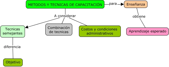 Este Cmap, tiene información relacionada con: METODOS Y TECNICAS DE CAPACITACION, METODOS Y TECNICAS DE CAPACITACIÓN A considerar Combinación de tecnicas, Enseñanza obtiene Aprendizaje esperado, METODOS Y TECNICAS DE CAPACITACIÓN A considerar Tecnicas semejantes, Tecnicas semejantes diferencia Objetivo, METODOS Y TECNICAS DE CAPACITACIÓN para Enseñanza, METODOS Y TECNICAS DE CAPACITACIÓN A considerar Costos y condiciones administrativos