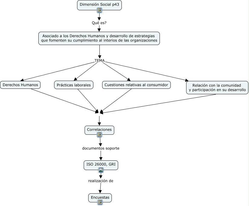 Este Cmap, tiene información relacionada con: Dim Social, Asociado a los Derechos Humanos y desarrollo de estrategias que fomenten su cumplimiento al interios de las organizaciones TEMA Derechos Humanos, Dimensión Social p43 Qué es? Asociado a los Derechos Humanos y desarrollo de estrategias que fomenten su cumplimiento al interios de las organizaciones, Correlaciones documentos soporte ISO 26000, GRI, Asociado a los Derechos Humanos y desarrollo de estrategias que fomenten su cumplimiento al interios de las organizaciones TEMA Prácticas laborales, ISO 26000, GRI realización de Encuestas, Asociado a los Derechos Humanos y desarrollo de estrategias que fomenten su cumplimiento al interios de las organizaciones TEMA Cuestiones relativas al consumidor, Relación con la comunidad y participación en su desarrollo Correlaciones, Prácticas laborales Correlaciones, Asociado a los Derechos Humanos y desarrollo de estrategias que fomenten su cumplimiento al interios de las organizaciones TEMA Relación con la comunidad y participación en su desarrollo, Derechos Humanos Correlaciones, Cuestiones relativas al consumidor Correlaciones