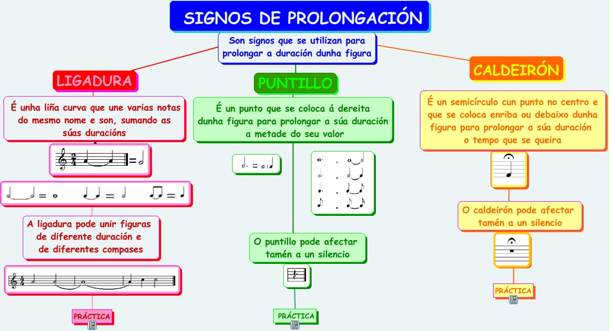Este Cmap, tiene información relacionada con: Signos de prolongación, SIGNOS DE PROLONGACIÓN ???? LIGADURA, ???? A ligadura pode unir figuras de diferente duración e de diferentes compases, ???? É unha liña curva que une varias notas do mesmo nome e son, sumando as súas duracións, PRÁCTICA ????, ???? É un semicírculo cun punto no centro e que se coloca enriba ou debaixo dunha figura para prolongar a súa duración o tempo que se queira, É un punto que se coloca á dereita dunha figura para prolongar a súa duración a metade do seu valor ???? O puntillo pode afectar tamén a un silencio, PUNTILLO ???? É un punto que se coloca á dereita dunha figura para prolongar a súa duración a metade do seu valor, PUNTILLO ???? Son signos que se utilizan para prolongar a duración dunha figura, PRÁCTICA ????, SIGNOS DE PROLONGACIÓN ???? CALDEIRÓN, ????, É unha liña curva que une varias notas do mesmo nome e son, sumando as súas duracións ???? LIGADURA, PRÁCTICA ????, ???? A ligadura pode unir figuras de diferente duración e de diferentes compases