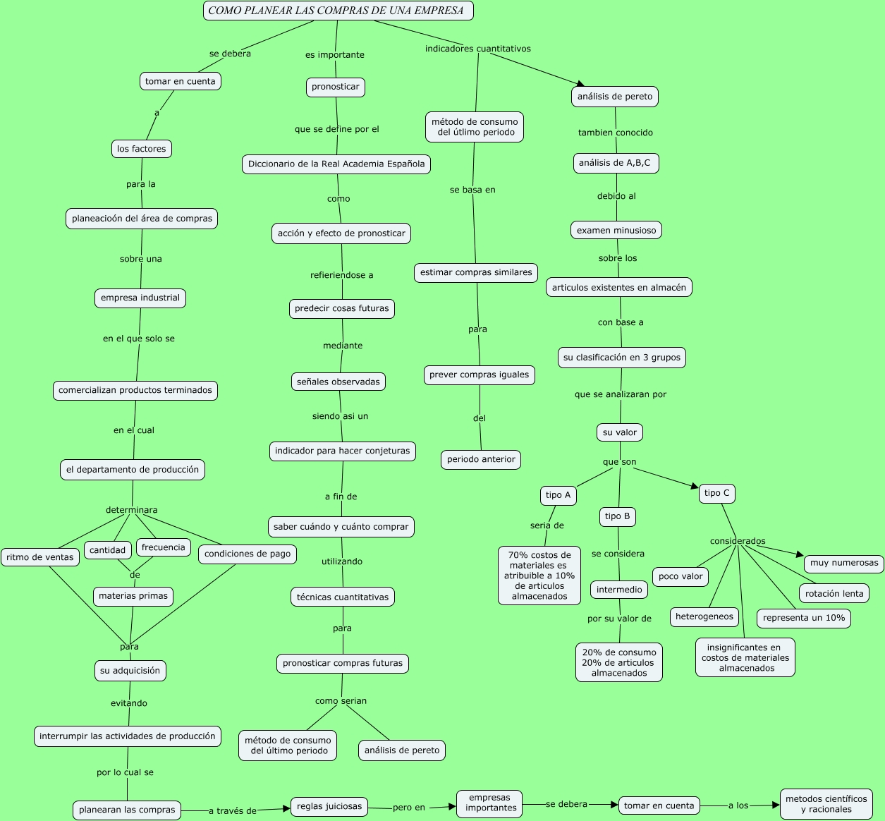 Este Cmap, tiene información relacionada con: como planear las compras de una empresa, condiciones de pago para su adquicisión, interrumpir las actividades de producción por lo cual se planearan las compras, el departamento de producción determinara cantidad, pronosticar compras futuras como serian análisis de pereto, comercializan productos terminados en el cual el departamento de producción, COMO PLANEAR LAS COMPRAS DE UNA EMPRESA se debera tomar en cuenta, empresa industrial en el que solo se comercializan productos terminados, tipo C considerados representa un 10%, análisis de pereto tambien conocido análisis de A,B,C, Diccionario de la Real Academia Española como acción y efecto de pronosticar, su clasificación en 3 grupos que se analizaran por su valor, COMO PLANEAR LAS COMPRAS DE UNA EMPRESA indicadores cuantitativos método de consumo del útlimo periodo, tipo C considerados poco valor, intermedio por su valor de 20% de consumo 20% de articulos almacenados, articulos existentes en almacén con base a su clasificación en 3 grupos, el departamento de producción determinara condiciones de pago, el departamento de producción determinara frecuencia, planeacioón del área de compras sobre una empresa industrial, método de consumo del útlimo periodo se basa en estimar compras similares, examen minusioso sobre los articulos existentes en almacén