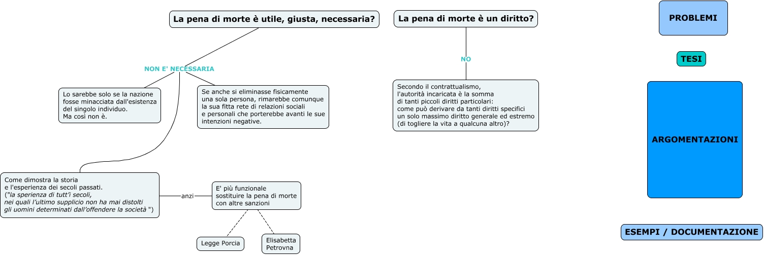 Questa Cmap, creata con IHMC CmapTools, contiene informazioni relative a: De' delitti e delle pene_3A RE4, La pena di morte è utile, giusta, necessaria? NON E' NECESSARIA Lo sarebbe solo se la nazione fosse minacciata dall'esistenza del singolo individuo. Ma così non è., E' più funzionale sostituire la pena di morte con altre sanzioni ???? Elisabetta Petrovna, La pena di morte è un diritto? NO Secondo il contrattualismo, l'autorità incaricata è la somma di tanti piccoli diritti particolari: come può derivare da tanti diritti specifici un solo massimo diritto generale ed estremo (di togliere la vita a qualcuna altro)?, La pena di morte è utile, giusta, necessaria? NON E' NECESSARIA Come dimostra la storia e l'esperienza dei secoli passati. ("la sperienza di tutt’i secoli, nei quali l’ultimo supplicio non ha mai distolti gli uomini determinati dall’offendere la società"), E' più funzionale sostituire la pena di morte con altre sanzioni ???? Legge Porcia, Come dimostra la storia e l'esperienza dei secoli passati. ("la sperienza di tutt’i secoli, nei quali l’ultimo supplicio non ha mai distolti gli uomini determinati dall’offendere la società") anzi E' più funzionale sostituire la pena di morte con altre sanzioni, La pena di morte è utile, giusta, necessaria? NON E' NECESSARIA Se anche si eliminasse fisicamente una sola persona, rimarebbe comunque la sua fitta rete di relazioni sociali e personali che porterebbe avanti le sue intenzioni negative.