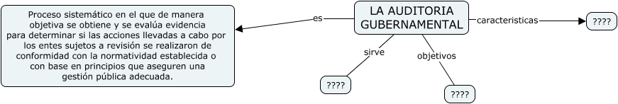 Este Cmap, tiene información relacionada con: la auditoria gubernamental, LA AUDITORIA GUBERNAMENTAL objetivos ????, LA AUDITORIA GUBERNAMENTAL caracteristicas ????, LA AUDITORIA GUBERNAMENTAL es Proceso sistemático en el que de manera objetiva se obtiene y se evalúa evidencia para determinar si las acciones llevadas a cabo por los entes sujetos a revisión se realizaron de conformidad con la normatividad establecida o con base en principios que aseguren una gestión pública adecuada., LA AUDITORIA GUBERNAMENTAL sirve ????