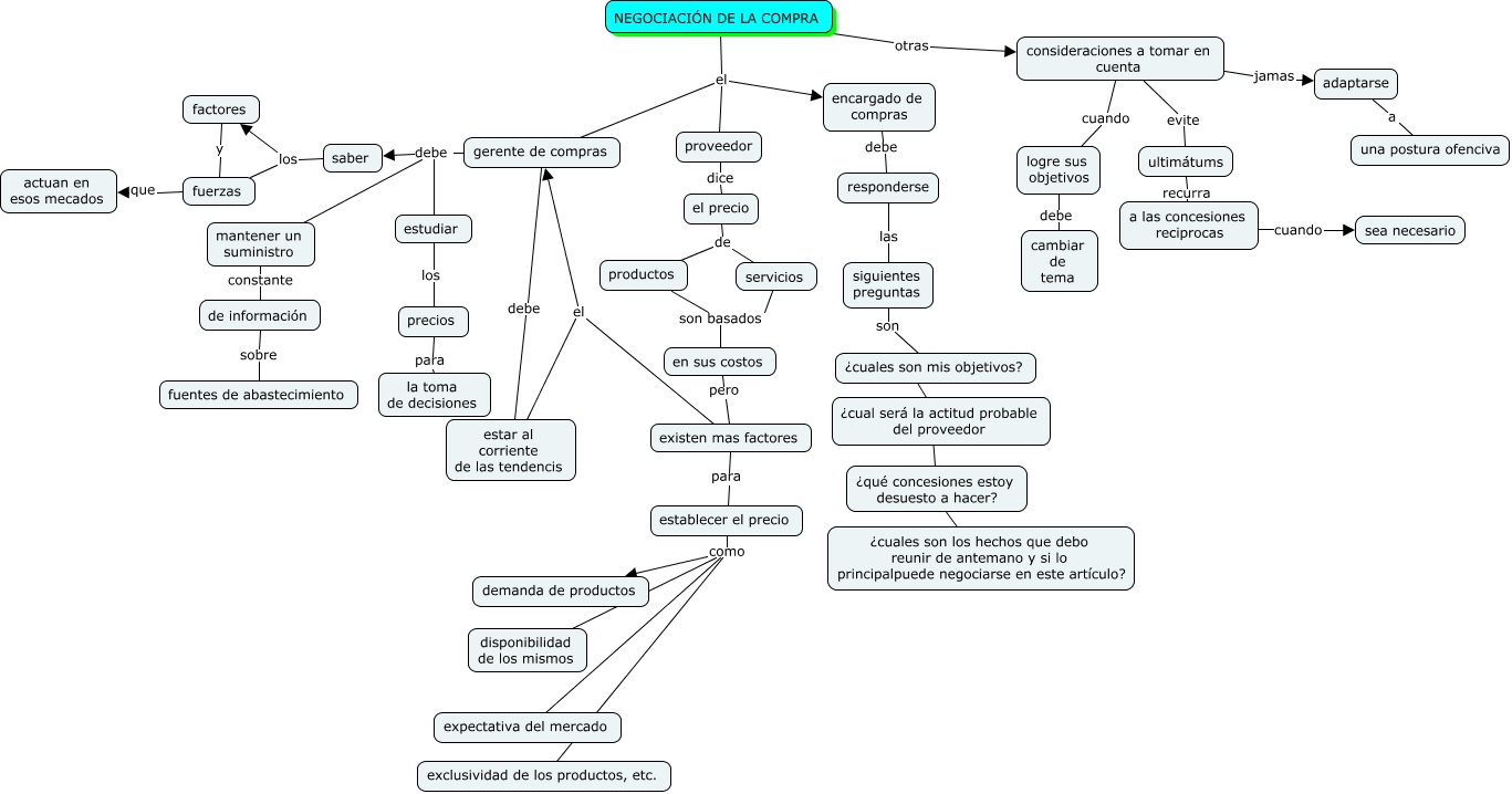 Este Cmap, tiene información relacionada con: Negociación de la compra, existen mas factores el estar al corriente de las tendencis, estudiar los precios, establecer el precio como disponibilidad de los mismos, NEGOCIACIÓN DE LA COMPRA el encargado de compras, saber los fuerzas, proveedor dice el precio, responderse las siguientes preguntas, gerente de compras debe mantener un suministro, a las concesiones reciprocas cuando sea necesario, NEGOCIACIÓN DE LA COMPRA el gerente de compras, establecer el precio como demanda de productos, gerente de compras debe saber, logre sus objetivos debe cambiar de tema, en sus costos pero existen mas factores, ¿qué concesiones estoy desuesto a hacer? ???? ¿cuales son los hechos que debo reunir de antemano y si lo principalpuede negociarse en este artículo?, ultimátums recurra a las concesiones reciprocas, establecer el precio como exclusividad de los productos, etc., existen mas factores el gerente de compras, siguientes preguntas son ¿cuales son mis objetivos?, fuerzas que actuan en esos mecados