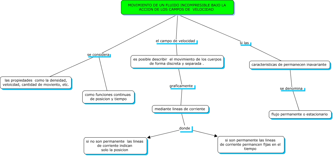 Este Cmap, tiene información relacionada con: mapa conceptual 11, mediante lineas de corriente donde si son permanente las lineas de corriente permancen fijas en el tiempo, MOVIMIENTO DE UN FLUIDO INCOMPRESIBLE BAJO LA ACCION DE LOS CAMPOS DE VELOCIDAD se considera las propiedades como la densidad, veloicdad, cantidad de moviento, etc., MOVIMIENTO DE UN FLUIDO INCOMPRESIBLE BAJO LA ACCION DE LOS CAMPOS DE VELOCIDAD se considera como funciones continuas de posicion y tiempo, caracteristicas de permanecen inavariante se denomina flujo permanente o estacionario, MOVIMIENTO DE UN FLUIDO INCOMPRESIBLE BAJO LA ACCION DE LOS CAMPOS DE VELOCIDAD si las caracteristicas de permanecen inavariante, mediante lineas de corriente donde si no son permanente las lineas de corriente indican solo la posicion, es posible describir el movimiento de los cuerpos de forma discreta y separada . graficamente mediante lineas de corriente, MOVIMIENTO DE UN FLUIDO INCOMPRESIBLE BAJO LA ACCION DE LOS CAMPOS DE VELOCIDAD el campo de velocidad es posible describir el movimiento de los cuerpos de forma discreta y separada .
