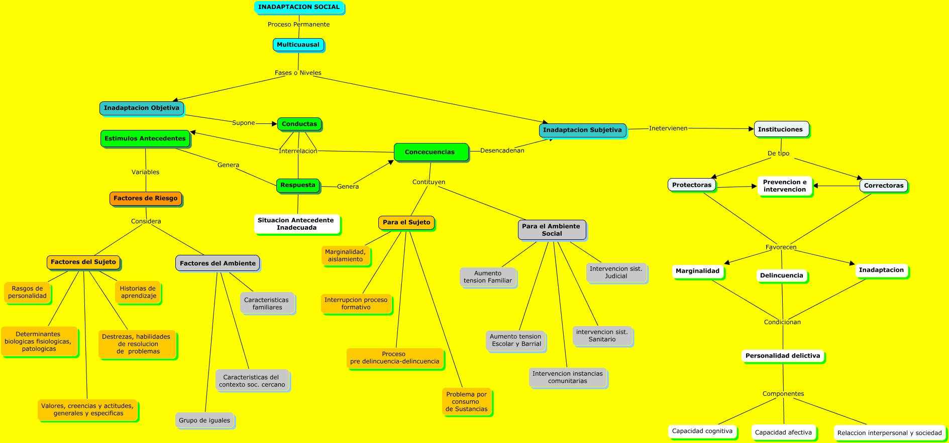 Este Cmap, tiene información relacionada con: Copia de Copia de Trabajo Iinadaptacion social de los individuos, Inadaptacion Condicionan Personalidad delictiva, Para el Sujeto Problema por consumo de Sustancias, Conductas Interrelacion Respuesta, Factores del Ambiente Grupo de iguales, Correctoras Favorecen Delincuencia, Instituciones De tipo Correctoras, Multicuausal Fases o Niveles Inadaptacion Objetiva, Para el Sujeto Interrupcion proceso formativo, Para el Ambiente Social Intervencion instancias comunitarias, Estimulos Antecedentes Genera Respuesta, Factores de Riesgo Considera Factores del Ambiente, Protectoras Favorecen Marginalidad, Para el Ambiente Social Aumento tension Escolar y Barrial, Protectoras ???? Prevencion e intervencion, Concecuencias Contituyen Para el Sujeto, Marginalidad Condicionan Personalidad delictiva, Conductas Estimulos Antecedentes, Protectoras Favorecen Inadaptacion, Relaccion interpersonal y sociedad Componentes Capacidad cognitiva, Instituciones De tipo Protectoras