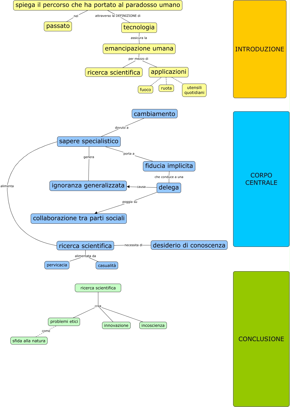 Questa Cmap, creata con IHMC CmapTools, contiene informazioni relative a: Copia di Dal testo alla scaletta_MATURITA' 2019, emancipazione umana per mezzo di ricerca scientifica, ricerca scientifica alimentata da casualità, delega causa ignoranza generalizzata, applicazioni ???? ruota, ricerca scientifica crea innovazione, emancipazione umana per mezzo di applicazioni, spiega il percorso che ha portato al paradosso umano attraverso la DEFINIZIONE di tecnologia, cambiamento dovuto a sapere specialistico, delega poggia su collaborazione tra parti sociali, sapere specialistico alimenta ricerca scientifica, ricerca scientifica necessita di desiderio di conoscenza, sapere specialistico porta a fiducia implicita, problemi etici come sfida alla natura, ricerca scientifica alimentata da pervicacia, tecnologia assicura la emancipazione umana, applicazioni ???? fuoco, sapere specialistico genera ignoranza generalizzata, spiega il percorso che ha portato al paradosso umano nel passato, ricerca scientifica crea problemi etici, fiducia implicita che conduce a una delega
