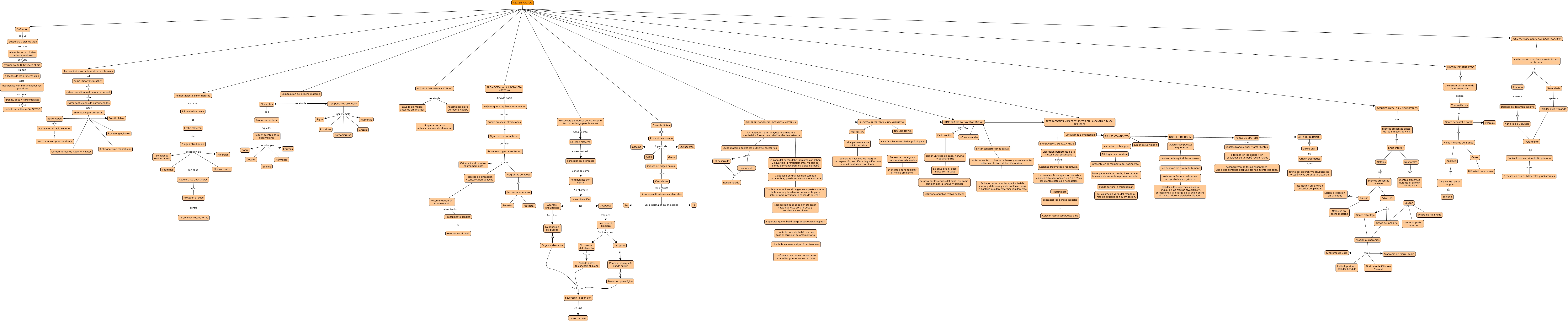 Este Cmap, tiene información relacionada con: LA UNIDAD III, estrcutura que presentan son Cordon fibroso de Robin y Magitot, Desorden psicológico Por lo tanto Favorecen la aparición, presente en el momento del nacimiento. ???? Masa pedunculada rosada, insertada en la cresta del reborde o proceso alveolar., Grasas de origen animal Cuyas Cantidades, Proporcion al bebé aquellos Requerimientos para desarrollarse, . La prevalencia de aparición de estas lesiones está asociada en un 6 a 10% a los dientes natales o neonatales ???? Tratamiento, Componentes esenciales por ejemplo Carbohidratos, Causa ???? Dificultad para comer, NO NUTRITIVA ???? Satisface las necesidades psícologicas, estructuras tienen de manera natural para evitar confuciones de enfermedades, el desarrollo del Recién nacido, ÉPULIS CONGÉNITO ???? es un tumor benigno, Puede ser uni- o multilobular. ???? Su coloración varía del rosado al rojo de acuerdo con su irrigación., no superan los 3 mm de tamaño ???? onsistencia firme y nodular con un aspecto blanco grisáceo., Asocian a sindromes como Sindrome de Pierre-Robin, Favorecen la aparición De una Lesión cariosa, Participar en el proceso Conocido como Remineralización dental, grasas, agua y carbohidratos a este periodo se le llama CALOSTRO, Traumatismos por Diente neonatal o natal, ENFERMEDAD DE RIGA FEDE ???? Ulceración persistente de la mucosa oral secundaria
