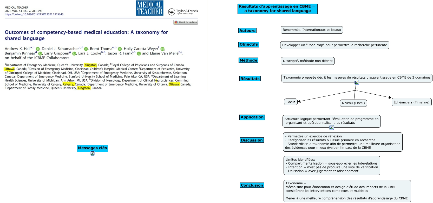Cette carte de concepts créée avec IHMC CmapTools traite de: CBME taxonomy, Taxonomie proposée décrit les mesures de résultats d'apprentissage en CBME de 3 domaines A Niveau (Level), Taxonomie proposée décrit les mesures de résultats d'apprentissage en CBME de 3 domaines A Échéanciers (Timeline), Taxonomie proposée décrit les mesures de résultats d'apprentissage en CBME de 3 domaines A Focus