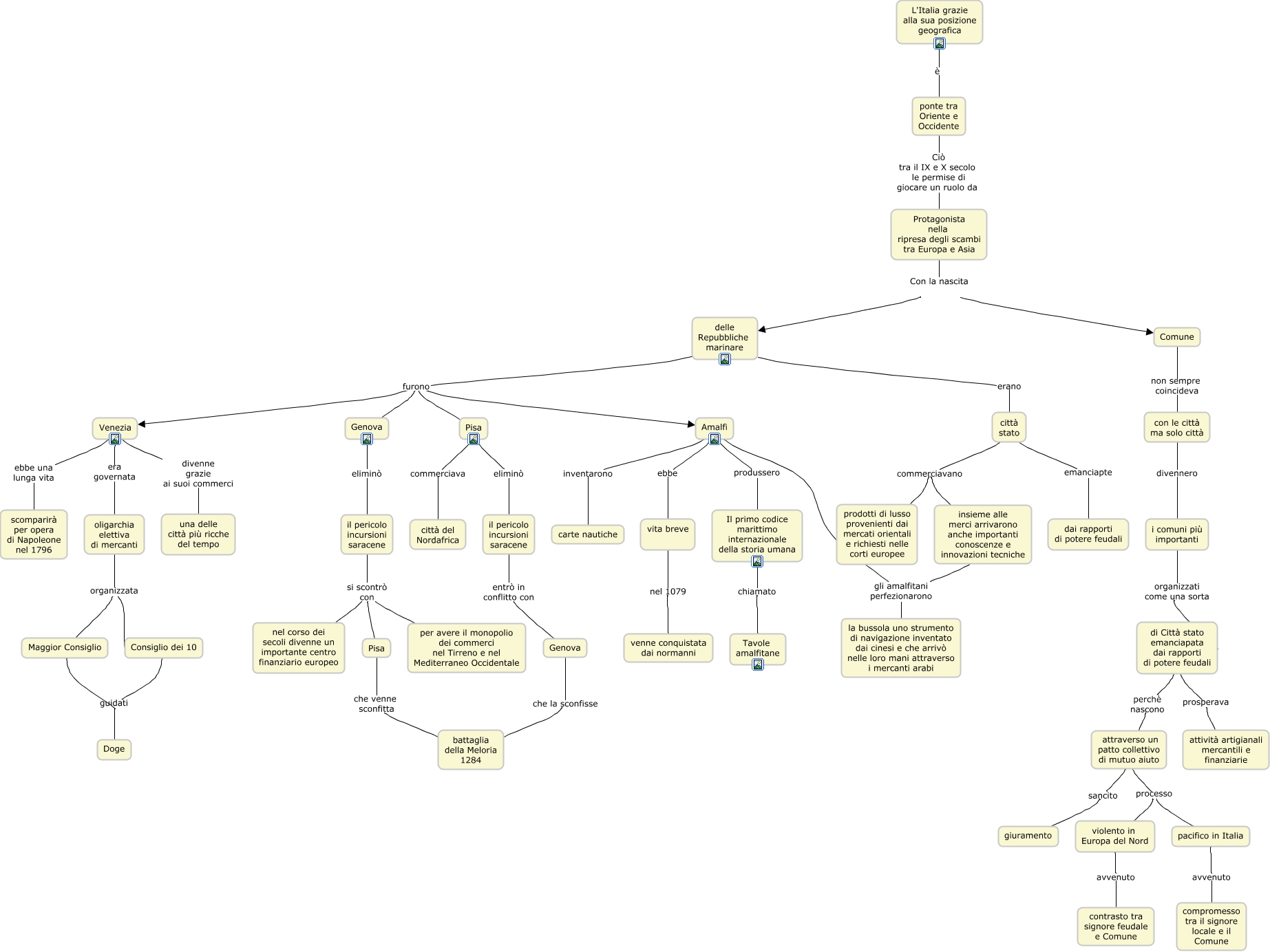 Questa Cmap, creata con IHMC CmapTools, contiene informazioni relative a: le repubbliche marinare, vita breve nel 1079 venne conquistata dai normanni, delle Repubbliche marinare furono Pisa, Pisa commerciava città del Nordafrica, Il primo codice marittimo internazionale della storia umana chiamato Tavole amalfitane, Protagonista nella ripresa degli scambi tra Europa e Asia Con la nascita delle Repubbliche marinare, città stato commerciavano insieme alle merci arrivarono anche importanti conoscenze e innovazioni tecniche, delle Repubbliche marinare furono Venezia, città stato emanciapte dai rapporti di potere feudali, delle Repubbliche marinare erano città stato, attraverso un patto collettivo di mutuo aiuto processo violento in Europa del Nord, Venezia divenne grazie ai suoi commerci una delle città più ricche del tempo, il pericolo incursioni saracene entrò in conflitto con Genova, con le città ma solo città divennero i comuni più importanti, violento in Europa del Nord avvenuto contrasto tra signore feudale e Comune, Amalfi inventarono carte nautiche, Amalfi gli amalfitani perfezionarono la bussola uno strumento di navigazione inventato dai cinesi e che arrivò nelle loro mani attraverso i mercanti arabi, Pisa eliminò il pericolo incursioni saracene, attraverso un patto collettivo di mutuo aiuto processo pacifico in Italia, delle Repubbliche marinare furono Amalfi, di Città stato emanciapata dai rapporti di potere feudali prosperava attività artigianali mercantili e finanziarie