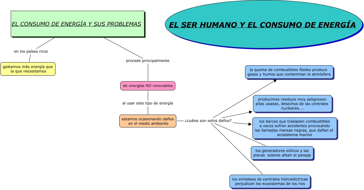 Este Cmap, tiene información relacionada con: EL SER HUMANO Y EL CONSUMO DE ENERG�?A, estamos ocasionando daños en el medio ambiente ¿cuáles son estos daños? los embalses de centrales hidroeléctricas perjudican los ecosistemas de los ríos, EL CONSUMO DE ENERG�?A Y SUS PROBLEMAS en los países ricos gastamos más energía que la que necesitamos, EL CONSUMO DE ENERG�?A Y SUS PROBLEMAS procede principalmente de energías NO renovables, estamos ocasionando daños en el medio ambiente ¿cuáles son estos daños? los barcos que trasladan combustibles a veces sufren accidentes provocando las llamadas mareas negras, que dañan el ecosistema marino, estamos ocasionando daños en el medio ambiente ¿cuáles son estos daños? producimos residuos muy peligrosos: pilas usadas, desechos de las centrales nucleares...., de energías NO renovables al usar este tipo de energía estamos ocasionando daños en el medio ambiente, estamos ocasionando daños en el medio ambiente ¿cuáles son estos daños? los generadores eólicos y las placas solares afean el paisaje, estamos ocasionando daños en el medio ambiente ¿cuáles son estos daños? la quema de combustibles fósiles produce gases y humos que contaminan la atmósfera