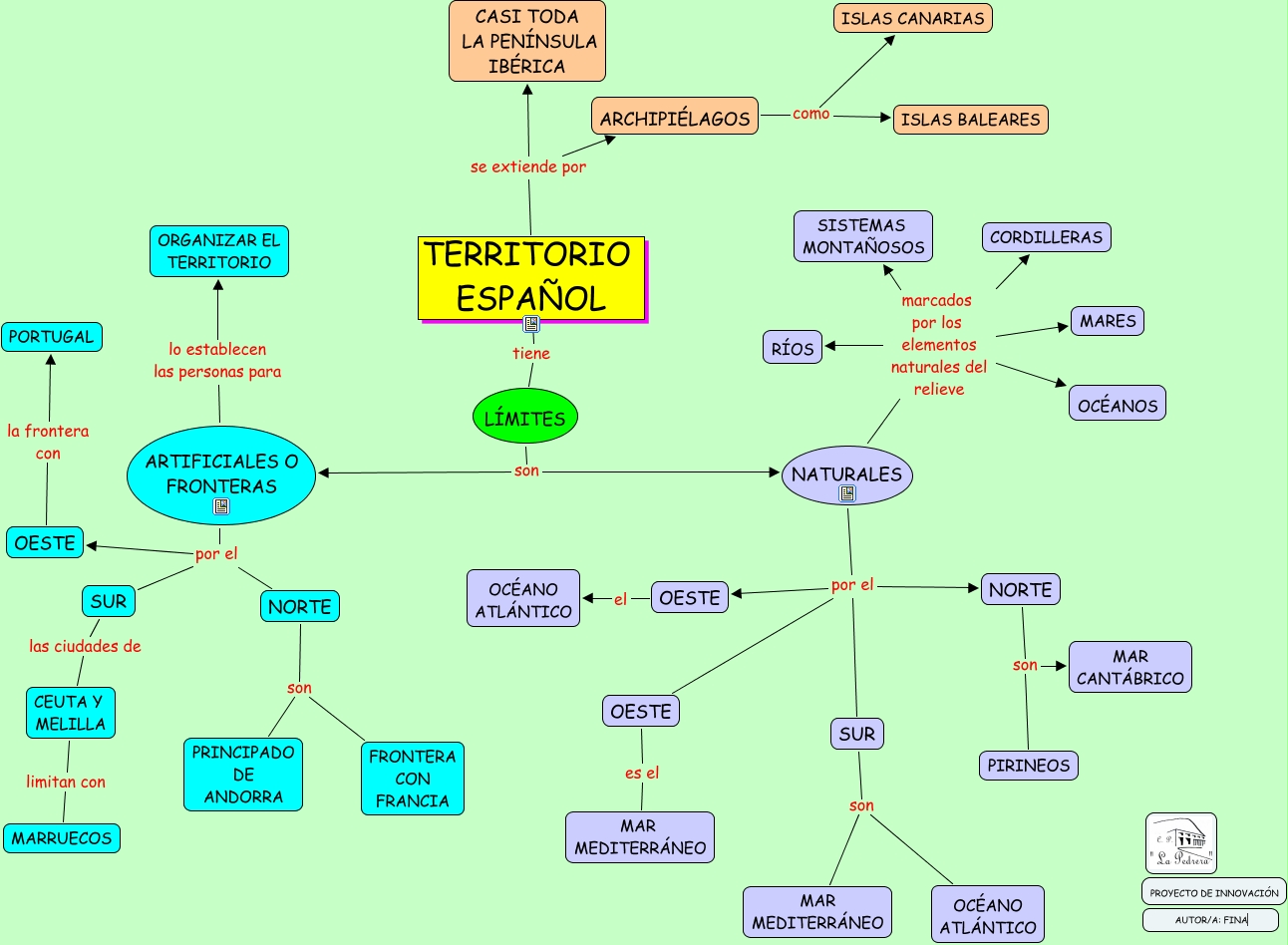 Este Cmap, tiene información relacionada con: TERRITORIO ESPAÑOL 4º, NATURALES marcados por los elementos naturales del relieve OCÉANOS, ARTIFICIALES O FRONTERAS lo establecen las personas para ORGANIZAR EL TERRITORIO, TERRITORIO ESPAÑOL se extiende por ARCHIPIÉLAGOS, OESTE el OCÉANO ATL�?NTICO, TERRITORIO ESPAÑOL se extiende por CASI TODA LA PEN�?NSULA IBÉRICA, CEUTA Y MELILLA limitan con MARRUECOS, NORTE son PRINCIPADO DE ANDORRA, NORTE son MAR CANT�?BRICO, SUR son OCÉANO ATL�?NTICO, NORTE son PIRINEOS, SUR las ciudades de CEUTA Y MELILLA, ARTIFICIALES O FRONTERAS por el NORTE, OESTE es el MAR MEDITERR�?NEO, NATURALES por el NORTE, NATURALES marcados por los elementos naturales del relieve R�?OS, TERRITORIO ESPAÑOL tiene L�?MITES, L�?MITES son ARTIFICIALES O FRONTERAS, ARTIFICIALES O FRONTERAS por el SUR, NATURALES por el SUR, NATURALES marcados por los elementos naturales del relieve SISTEMAS MONTAÑOSOS