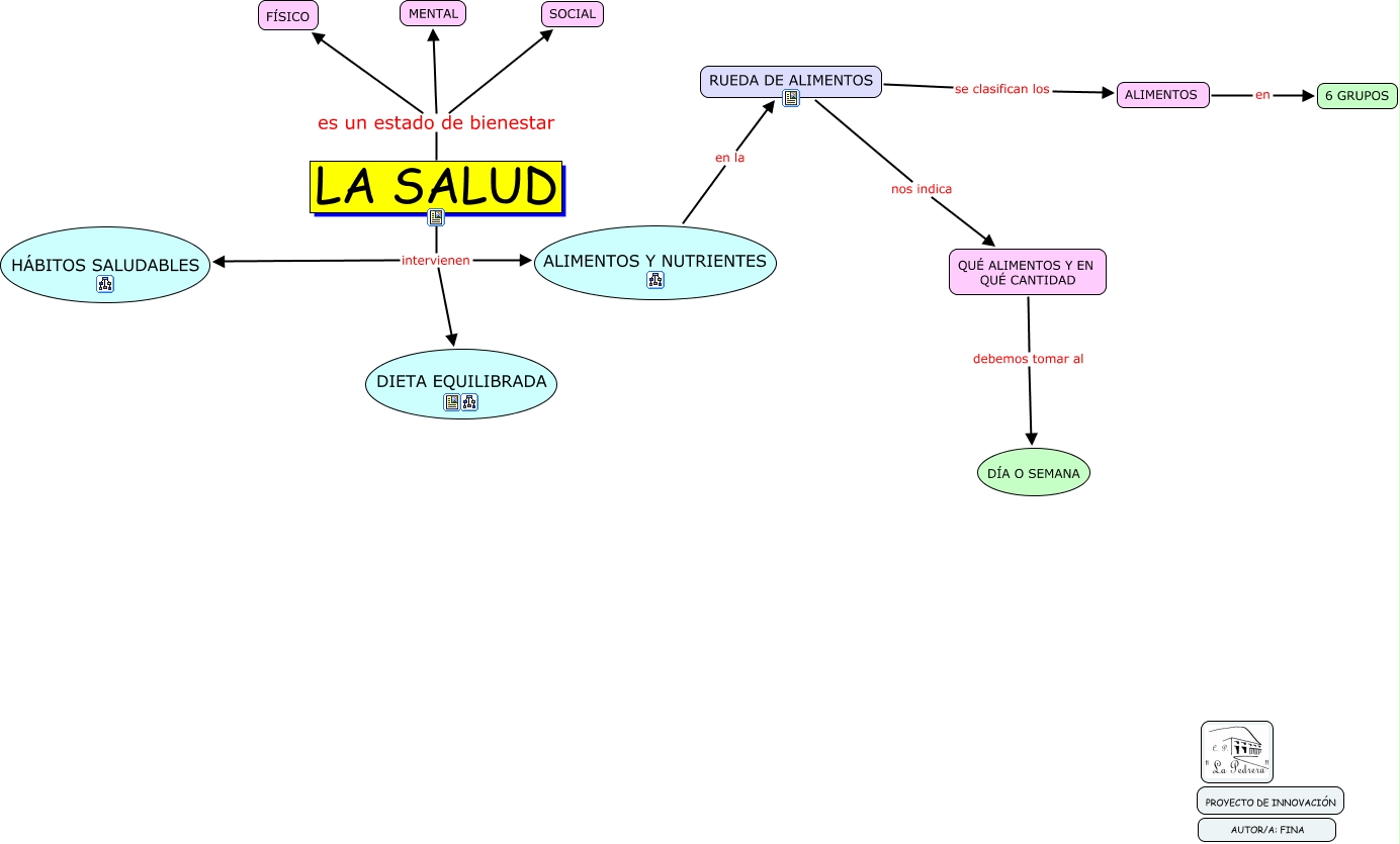 Este Cmap, tiene información relacionada con: SALUD 4º PRIMARIA, QUÉ ALIMENTOS Y EN QUÉ CANTIDAD debemos tomar al D�?A O SEMANA, LA SALUD es un estado de bienestar SOCIAL, LA SALUD intervienen ALIMENTOS Y NUTRIENTES, LA SALUD intervienen H�?BITOS SALUDABLES, LA SALUD es un estado de bienestar MENTAL, RUEDA DE ALIMENTOS se clasifican los ALIMENTOS, LA SALUD es un estado de bienestar F�?SICO, LA SALUD intervienen DIETA EQUILIBRADA, ALIMENTOS en 6 GRUPOS, RUEDA DE ALIMENTOS nos indica QUÉ ALIMENTOS Y EN QUÉ CANTIDAD, ALIMENTOS Y NUTRIENTES en la RUEDA DE ALIMENTOS