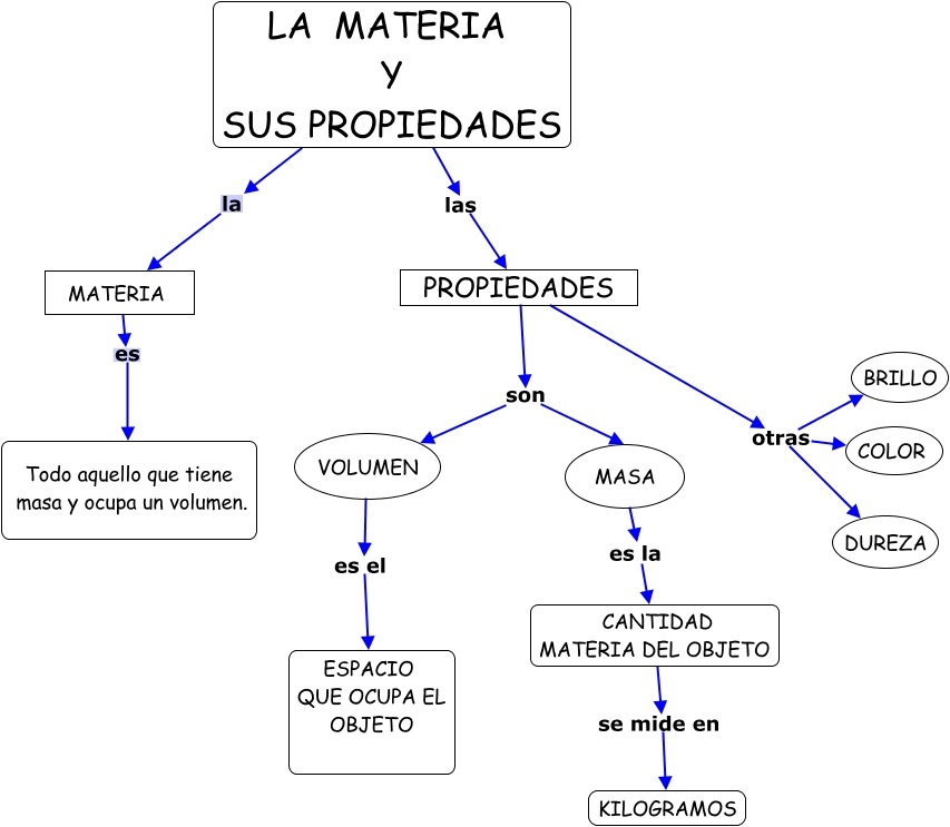 Este Cmap, tiene información relacionada con: PROPIEDADES DE LOS MATERIALES3º, MASA es la CANTIDAD MATERIA DEL OBJETO, LA MATERIA Y SUS PROPIEDADES la MATERIA, LA MATERIA Y SUS PROPIEDADES las PROPIEDADES, CANTIDAD MATERIA DEL OBJETO se mide en KILOGRAMOS, PROPIEDADES otras DUREZA, MATERIA es Todo aquello que tiene masa y ocupa un volumen., PROPIEDADES otras COLOR, PROPIEDADES son VOLUMEN, PROPIEDADES otras BRILLO, PROPIEDADES son MASA, VOLUMEN es el ESPACIO QUE OCUPA EL OBJETO