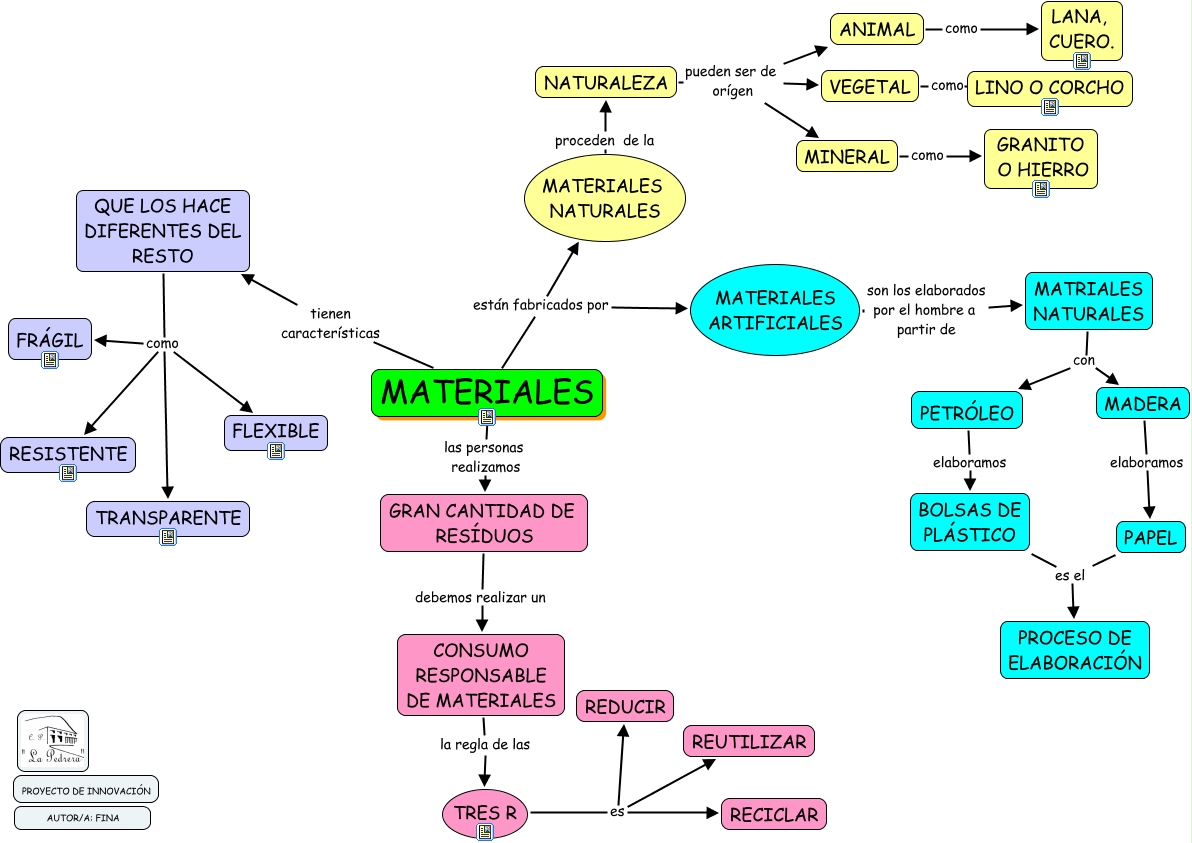 Este Cmap, tiene información relacionada con: MATERIALES 4º, MATERIALES NATURALES proceden de la NATURALEZA, CONSUMO RESPONSABLE DE MATERIALES la regla de las TRES R, QUE LOS HACE DIFERENTES DEL RESTO como FR�?GIL, MATERIALES ARTIFICIALES son los elaborados por el hombre a partir de MATRIALES NATURALES, PAPEL es el PROCESO DE ELABORACIÓN, NATURALEZA pueden ser de orígen MINERAL, MATRIALES NATURALES con PETRÓLEO, TRES R es RECICLAR, QUE LOS HACE DIFERENTES DEL RESTO como TRANSPARENTE, TRES R es REDUCIR, BOLSAS DE PL�?STICO es el PROCESO DE ELABORACIÓN, MATERIALES están fabricados por MATERIALES ARTIFICIALES, QUE LOS HACE DIFERENTES DEL RESTO como FLEXIBLE, MATRIALES NATURALES con MADERA, MATERIALES las personas realizamos GRAN CANTIDAD DE RES�?DUOS, NATURALEZA pueden ser de orígen VEGETAL, ANIMAL como LANA, CUERO., MATERIALES tienen características QUE LOS HACE DIFERENTES DEL RESTO, GRAN CANTIDAD DE RES�?DUOS debemos realizar un CONSUMO RESPONSABLE DE MATERIALES, VEGETAL como LINO O CORCHO