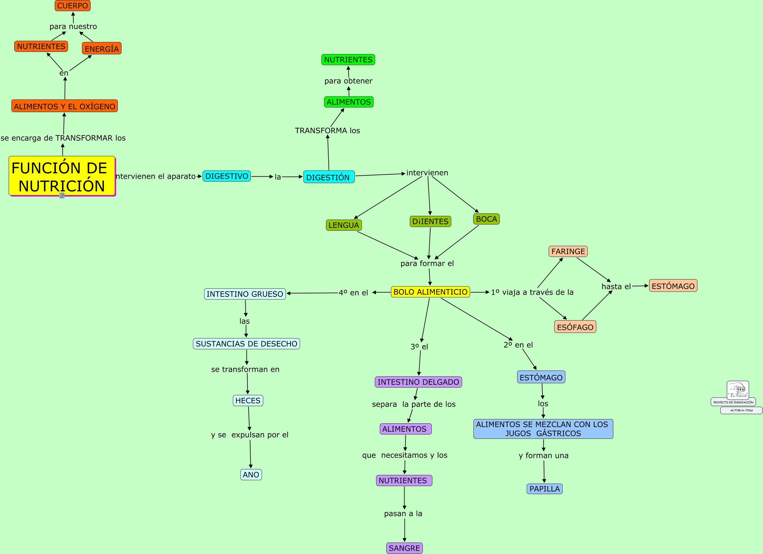 Este Cmap, tiene información relacionada con: FUNCIÓN DE NUTRICIÓN 4º, BOLO ALIMENTICIO 3º el INTESTINO DELGADO, HECES y se expulsan por el ANO, INTESTINO GRUESO las SUSTANCIAS DE DESECHO, FUNCIÓN DE NUTRICIÓN intervienen el aparato DIGESTIVO, SUSTANCIAS DE DESECHO se transforman en HECES, INTESTINO DELGADO separa la parte de los ALIMENTOS, BOLO ALIMENTICIO 1º viaja a través de la ESÓFAGO, BOLO ALIMENTICIO 1º viaja a través de la FARINGE, BOLO ALIMENTICIO 2º en el ESTÓMAGO, ESTÓMAGO los ALIMENTOS SE MEZCLAN CON LOS JUGOS G�?STRICOS, DIGESTIÓN TRANSFORMA los ALIMENTOS, DIGESTIÓN intervienen BOCA, NUTRIENTES pasan a la SANGRE, DIGESTIÓN intervienen LENGUA, DIGESTIÓN intervienen D¡IENTES, BOLO ALIMENTICIO 4º en el INTESTINO GRUESO, ALIMENTOS Y EL OX�?GENO en ENERG�?A, LENGUA para formar el BOLO ALIMENTICIO, NUTRIENTES para nuestro CUERPO, DIGESTIVO la DIGESTIÓN