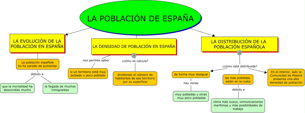 Este Cmap, tiene información relacionada con: 12.2 - LA POBLACIÓN DE ESPAÑA, La población española no ha parado de aumentar debido a que la mortalidad ha descendido mucho, de forma muy desigual hay zonas muy pobladas y otras muy poco pobladas, LA DISTRIBUCIÓN DE LA POBLACIÓN ESPAÑOLA ¿cómo está distribuida? En el interior, solo la Comunidad de Madrid presenta una alta densidad de población, las más pobladas están en la costa debido a clima más suave, comunicaciones marítimas y más posibilidades de trabajo, La población española no ha parado de aumentar debido a la llegada de muchos inmigrantes, LA POBLACIÓN DE ESPAÑA ???? LA EVOLUCIÓN DE LA POBLACIÓN EN ESPAÑA, LA DENSIDAD DE POBLACIÓN EN ESPAÑA nos permite saber si un territorio está muy poblado o poco poblado, LA DENSIDAD DE POBLACIÓN EN ESPAÑA ¿cómo se calcula? dividiendo el número de habitantes de ese territorio por su superficie, LA POBLACIÓN DE ESPAÑA ???? LA DISTRIBUCIÓN DE LA POBLACIÓN ESPAÑOLA, LA DISTRIBUCIÓN DE LA POBLACIÓN ESPAÑOLA ¿cómo está distribuida? las más pobladas están en la costa, LA EVOLUCIÓN DE LA POBLACIÓN EN ESPAÑA ???? La población española no ha parado de aumentar, LA DISTRIBUCIÓN DE LA POBLACIÓN ESPAÑOLA ¿cómo está distribuida? de forma muy desigual, LA POBLACIÓN DE ESPAÑA ???? LA DENSIDAD DE POBLACIÓN EN ESPAÑA