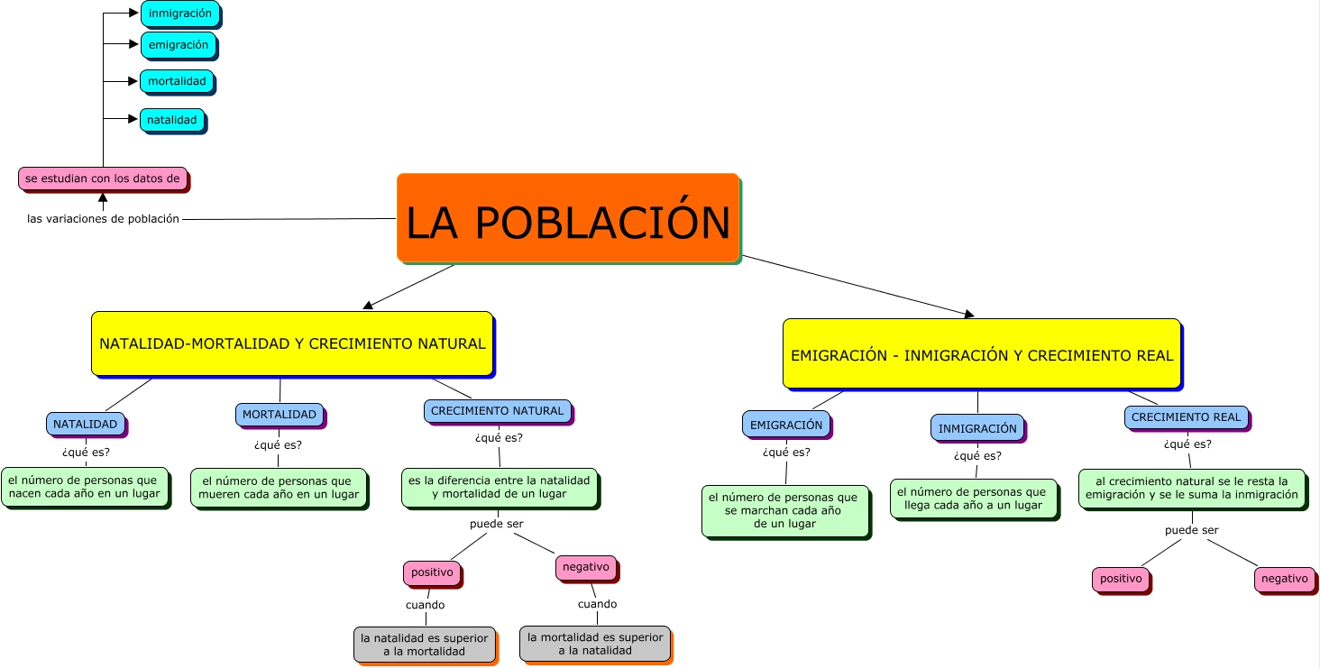 Este Cmap, tiene información relacionada con: 12.1 - LA POBLACIÓN, EMIGRACIÓN ¿qué es? el número de personas que se marchan cada año de un lugar, LA POBLACIÓN ???? NATALIDAD-MORTALIDAD Y CRECIMIENTO NATURAL, se estudian con los datos de ???? inmigración, se estudian con los datos de ???? emigración, NATALIDAD ¿qué es? el número de personas que nacen cada año en un lugar, es la diferencia entre la natalidad y mortalidad de un lugar puede ser positivo, CRECIMIENTO REAL ¿qué es? al crecimiento natural se le resta la emigración y se le suma la inmigración, EMIGRACIÓN - INMIGRACIÓN Y CRECIMIENTO REAL ???? EMIGRACIÓN, negativo cuando la mortalidad es superior a la natalidad, LA POBLACIÓN ???? EMIGRACIÓN - INMIGRACIÓN Y CRECIMIENTO REAL, es la diferencia entre la natalidad y mortalidad de un lugar puede ser negativo, NATALIDAD-MORTALIDAD Y CRECIMIENTO NATURAL ???? MORTALIDAD, se estudian con los datos de ???? mortalidad, al crecimiento natural se le resta la emigración y se le suma la inmigración puede ser negativo, EMIGRACIÓN - INMIGRACIÓN Y CRECIMIENTO REAL ???? INMIGRACIÓN, INMIGRACIÓN ¿qué es? el número de personas que llega cada año a un lugar, positivo cuando la natalidad es superior a la mortalidad, EMIGRACIÓN - INMIGRACIÓN Y CRECIMIENTO REAL ???? CRECIMIENTO REAL, NATALIDAD-MORTALIDAD Y CRECIMIENTO NATURAL ???? CRECIMIENTO NATURAL, se estudian con los datos de ???? natalidad