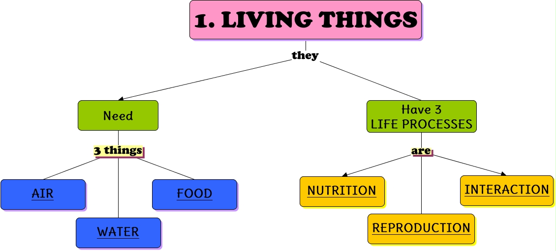 Este Cmap, tiene información relacionada con: 8.1 - Las rocas y los minerales, Need 3 things FOOD, Have 3 LIFE PROCESSES are NUTRITION, Need 3 things AIR, Have 3 LIFE PROCESSES are INTERACTION, Need 3 things WATER, 1. LIVING THINGS they Need, 1. LIVING THINGS they Have 3 LIFE PROCESSES, Have 3 LIFE PROCESSES are REPRODUCTION