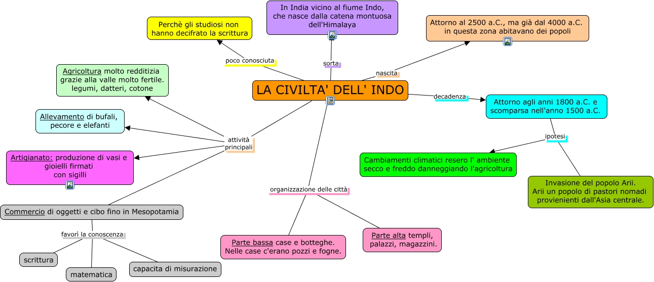 Questa Cmap, creata con IHMC CmapTools, contiene informazioni relative a: Civiltà dell'Indo, Attorno agli anni 1800 a.C. e scomparsa nell'anno 1500 a.C. ipotesi Invasione del popolo Arii. Arii un popolo di pastori nomadi provienienti dall'Asia centrale., LA CIVILTA' DELL' INDO decadenza Attorno agli anni 1800 a.C. e scomparsa nell'anno 1500 a.C., LA CIVILTA' DELL' INDO attività principali Artigianato: produzione di vasi e gioielli firmati con sigilli, LA CIVILTA' DELL' INDO organizzazione delle città Parte alta templi, palazzi, magazzini., LA CIVILTA' DELL' INDO poco conosciuta Perchè gli studiosi non hanno decifrato la scrittura, Commercio di oggetti e cibo fino in Mesopotamia favorì la conoscenza matematica, LA CIVILTA' DELL' INDO nascita Attorno al 2500 a.C., ma già dal 4000 a.C. in questa zona abitavano dei popoli, LA CIVILTA' DELL' INDO organizzazione delle città Parte bassa case e botteghe. Nelle case c'erano pozzi e fogne., Commercio di oggetti e cibo fino in Mesopotamia favorì la conoscenza capacita di misurazione, LA CIVILTA' DELL' INDO attività principali Allevamento di bufali, pecore e elefanti, LA CIVILTA' DELL' INDO attività principali Commercio di oggetti e cibo fino in Mesopotamia, Commercio di oggetti e cibo fino in Mesopotamia favorì la conoscenza scrittura, LA CIVILTA' DELL' INDO sorta In India vicino al fiume Indo, che nasce dalla catena montuosa dell'Himalaya, LA CIVILTA' DELL' INDO attività principali Agricoltura molto redditizia grazie alla valle molto fertile. legumi, datteri, cotone, Attorno agli anni 1800 a.C. e scomparsa nell'anno 1500 a.C. ipotesi Cambiamenti climatici resero l' ambiente secco e freddo danneggiando l'agricoltura