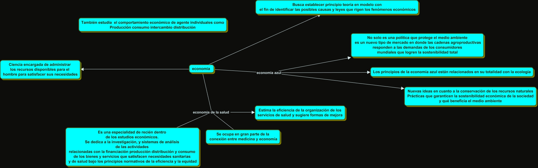 Este Cmap, tiene información relacionada con: economia jose, economia ???? Ciencia encargada de administrar los recursos disponibles para el hombre para satisfacer sus necesidades, economia economia de la salud Estima la eficiencia de la organización de los servicios de salud y sugiere formas de mejora, economia economia de la salud Es una especialidad de recién dentro de los estudios económicos. Se dedica a la investigación, y sistemas de análisis de las actividades relacionadas con la financiación producción distribución y consumo de los bienes y servicios que satisfacen necesidades sanitarias y de salud bajo los principios normativos de la eficiencia y la equidad, economia economia azul Los principios de la economía azul están relacionados en su totalidad con la ecología, economia economia de la salud Se ocupa en gran parte de la conexión entre medicina y economía, economia economia azul Nuevas ideas en cuanto a la conservación de los recursos naturales Prácticas que garanticen la sostenibilidad económica de la sociedad y qué beneficia el medio ambiente, economia economia azul No solo es una política que protege el medio ambiente es un nuevo tipo de mercado en donde las cadenas agroproductivas responden a las demandas de los consumidores mundiales que logren la sostenibilidad total, economia ???? Busca establecer principio teoría en modelo con el fin de identificar las posibles causas y leyes que rigen los fenómenos económicos