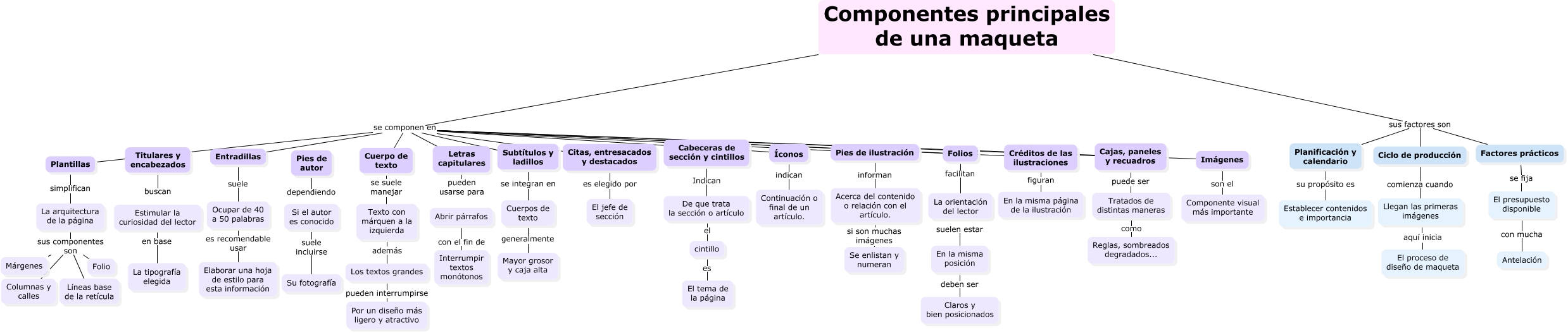 Este Cmap, tiene información relacionada con: Componentes principales de una maqueta, Componentes principales de una maqueta se componen en Cuerpo de texto, Planificación y calendario su propósito es Establecer contenidos e importancia, De que trata la sección o artículo el cintillo, Componentes principales de una maqueta se componen en Pies de autor, Cuerpos de texto generalmente Mayor grosor y caja alta, En la misma posición deben ser Claros y bien posicionados, cintillo es El tema de la página, Componentes principales de una maqueta se componen en Pies de ilustración, Llegan las primeras imágenes aquí inicia El proceso de diseño de maqueta, Folios facilitan La orientación del lector, Letras capitulares pueden usarse para Abrir párrafos, Componentes principales de una maqueta se componen en Titulares y encabezados, La arquitectura de la página sus componentes son Líneas base de la retícula, Componentes principales de una maqueta se componen en Imágenes, Componentes principales de una maqueta se componen en Cabeceras de sección y cintillos, Cajas, paneles y recuadros puede ser Tratados de distintas maneras, Los textos grandes pueden interrumpirse Por un diseño más ligero y atractivo, Pies de autor dependiendo Si el autor es conocido, Estimular la curiosidad del lector en base La tipografía elegida, Abrir párrafos con el fin de Interrumpir textos monótonos
