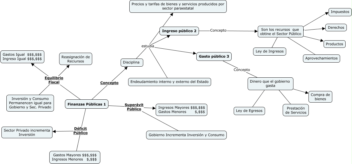 Este Cmap, tiene información relacionada con: Finanzas Publicas, Gasto público 3 Concepto Dinero que el gobierno gasta, Finanzas Públicas 1 Superávit Público Ingresos Mayores $$$,$$$ Gastos Menores $,$$$, Ingreso público 2 Concepto Son los recursos que obtine el Sector Público, Finanzas Públicas 1 Déficit Público Gastos Mayores $$$,$$$ Ingresos Menores $,$$$, Finanzas Públicas 1 Superávit Público Gobierno Incrementa Inversión y Consumo, Dinero que el gobierno gasta ???? Ley de Egresos, Finanzas Públicas 1 Equilibrio Fiscal Reasignación de Reciursos, Dinero que el gobierno gasta ???? Compra de bienes, Disciplina estudia Ingreso público 2, Finanzas Públicas 1 Equilibrio Fiscal Inversión y Consumo Permanencen igual para Gobierno y Sec. Privado, Son los recursos que obtine el Sector Público ???? Derechos, Son los recursos que obtine el Sector Público ???? Ley de Ingresos, Dinero que el gobierno gasta ???? Prestación de Servicios, Disciplina estudia Gasto público 3, Disciplina estudia Endeudamiento interno y externo del Estado, Son los recursos que obtine el Sector Público ???? Productos, Son los recursos que obtine el Sector Público ???? Impuestos, Finanzas Públicas 1 Déficit Público Sector Privado incrementa Inversión, Finanzas Públicas 1 Concepto Disciplina, Son los recursos que obtine el Sector Público ???? Aprovechamientos