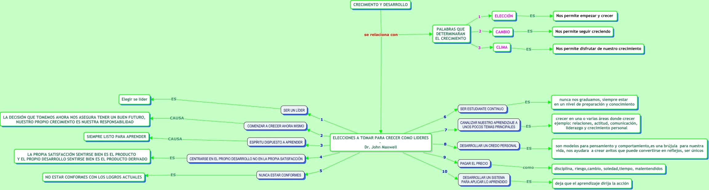 Este Cmap, tiene información relacionada con: prova, ELECCIÓN ES Nos permite empezar y crecer, DESARROLLAR UN CREDO PERSONAL ES son modelos para pensamiento y comportamiento,es una brújula para nuestra vida, nos ayudara a crear avitos que puede convertirse en reflejos, ser únicos, NUNCA ESTAR CONFORMES ES NO ESTAR CONFORMES CON LOS LOGROS ACTUALES, ELECCIONES A TOMAR PARA CRECER COMO LIDERES - Dr. John Maxwell 10 DESARROLLAR UN SISTEMA PARA APLICAR LO APRENDIDO, ELECCIONES A TOMAR PARA CRECER COMO LIDERES - Dr. John Maxwell 5 NUNCA ESTAR CONFORMES, ELECCIONES A TOMAR PARA CRECER COMO LIDERES - Dr. John Maxwell 9 PAGAR EL PRECIO, PALABRAS QUE DETERMINARAN EL CRECIMIENTO 2 CAMBIO, CENTRARSE EN EL PROPIO DESARROLLO NO EN LA PROPIA SATISFACCIÓN ES LA PROPIA SATISFACCIÓN SENTIRSE BIEN ES EL PRODUCTO Y EL PROPIO DESARROLLO SENTIRSE BIEN ES EL PRODUCTO DERIVADO, ELECCIONES A TOMAR PARA CRECER COMO LIDERES - Dr. John Maxwell 1 SER UN LÍDER, DESARROLLAR UN SISTEMA PARA APLICAR LO APRENDIDO ES deja que el aprendizaje dirija la acción, PALABRAS QUE DETERMINARAN EL CRECIMIENTO 1 ELECCIÓN, ELECCIONES A TOMAR PARA CRECER COMO LIDERES - Dr. John Maxwell 3 ESPÍRITU DISPUESTO A APRENDER, CRECIMIENTO Y DESARROLLO se relaciona con ELECCIONES A TOMAR PARA CRECER COMO LIDERES - Dr. John Maxwell, CLIMA ES Nos permite disfrutar de nuestro crecimiento, SER UN LÍDER ES Elegir se líder, CAMBIO ES Nos permite seguir creciendo, COMENZAR A CRECER AHORA MISMO CAUSA LA DECISIÓN QUE TOMEMOS AHORA NOS ASEGURA TENER UN BUEN FUTURO, NUESTRO PROPIO CRECIMIENTO ES NUESTRA RESPONSABILIDAD, ELECCIONES A TOMAR PARA CRECER COMO LIDERES - Dr. John Maxwell 6 SER ESTUDIANTE CONTINUO, ELECCIONES A TOMAR PARA CRECER COMO LIDERES - Dr. John Maxwell 4 CENTRARSE EN EL PROPIO DESARROLLO NO EN LA PROPIA SATISFACCIÓN, CANALIZAR NUESTRO APRENDIZAJE A UNOS POCOS TEMAS PRINCIPALES ES crecer en una o varias áreas donde crecer ejemplo: relaciones, actitud, comunicación, liderazgo y crecimiento personal