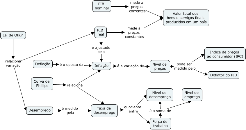 Esse mapa conceitual, produzido no IHMC CmapTools, tem a informação relacionada a: 2.1 - Relações entre PIB, Desemprego e Inflação - Análise Conceitual