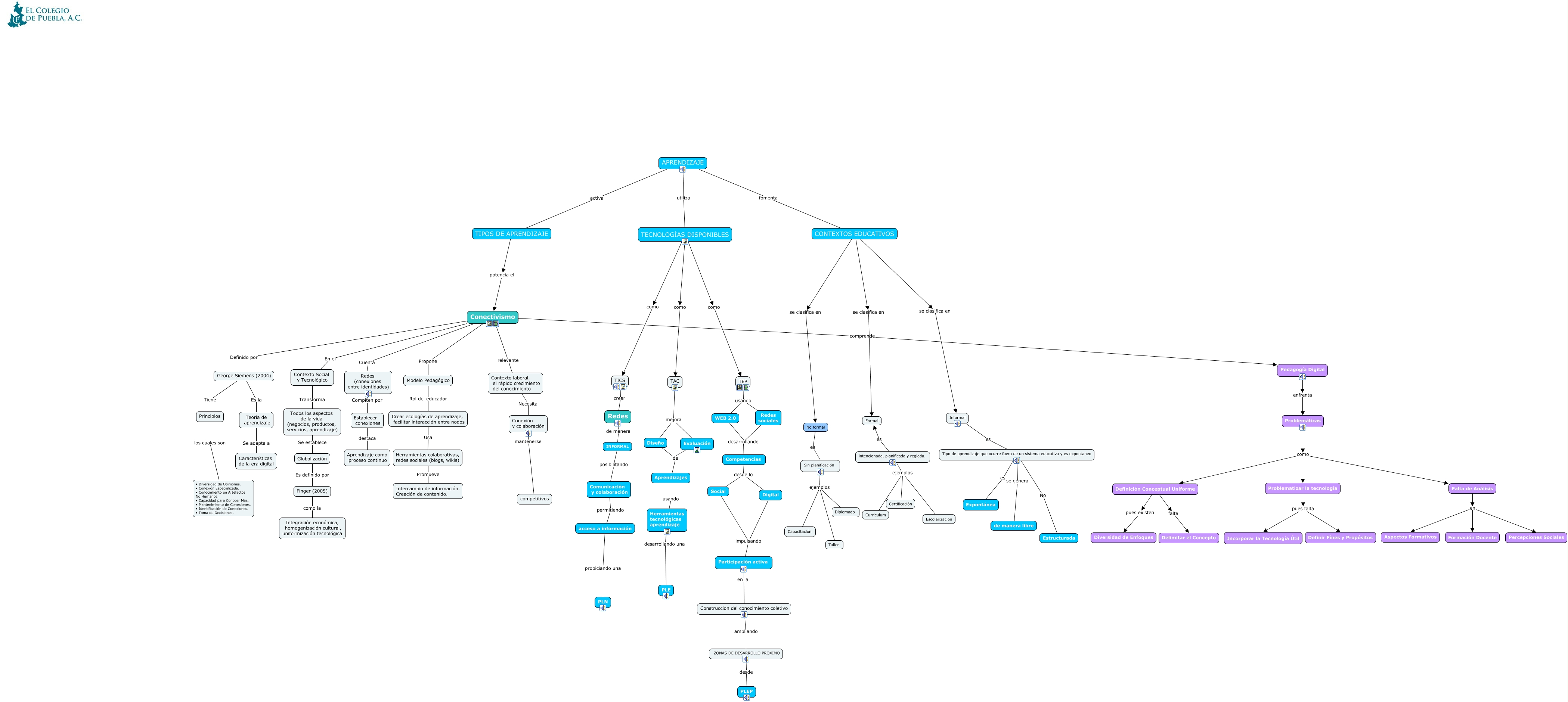 Este Cmap, tiene información relacionada con: Tarea Colaborativa MTIE 2025, Crear ecologías de aprendizaje, facilitar interacción entre nodos Usa Herramientas colaborativas, redes sociales (blogs, wikis), intencionada, planificada y reglada. ejemplos Curriculum, Certificación ejemplos Curriculum, Definición Conceptual Uniforme pues existen Diversidad de Enfoques, Diplomado ejemplos Capacitación, Todos los aspectos de la vida (negocios, productos, servicios, aprendizaje) Se establece Globalización, Conectivismo En el Contexto Social y Tecnológico, INFORMAL posibilitando Comunicación y colaboración, Problematizar la tecnología pues falta Incorporar la Tecnología Útil, APRENDIZAJE utiliza TECNOLOGÍAS DISPONIBLES, Tipo de aprendizaje que ocurre fuera de un sistema educativa y es expontaneo es Expontánea, Social impulsando Participación activa, Finger (2005) como la Integración económica, homogenización cultural, uniformización tecnológica, TEP usando WEB 2.0, CONTEXTOS EDUCATIVOS se clasifica en Formal, No formal es Sin planificación, Globalización Es definido por Finger (2005), Diplomado ejemplos Taller, Conectivismo comprende Pedagogía Digital, Principios los cuales son • Diversidad de Opiniones. • Conexión Especializada. • Conocimiento en Artefactos No Humanos. • Capacidad para Conocer Más. • Mantenimiento de Conexiones. • Identificación de Conexiones. • Toma de Decisiones.
