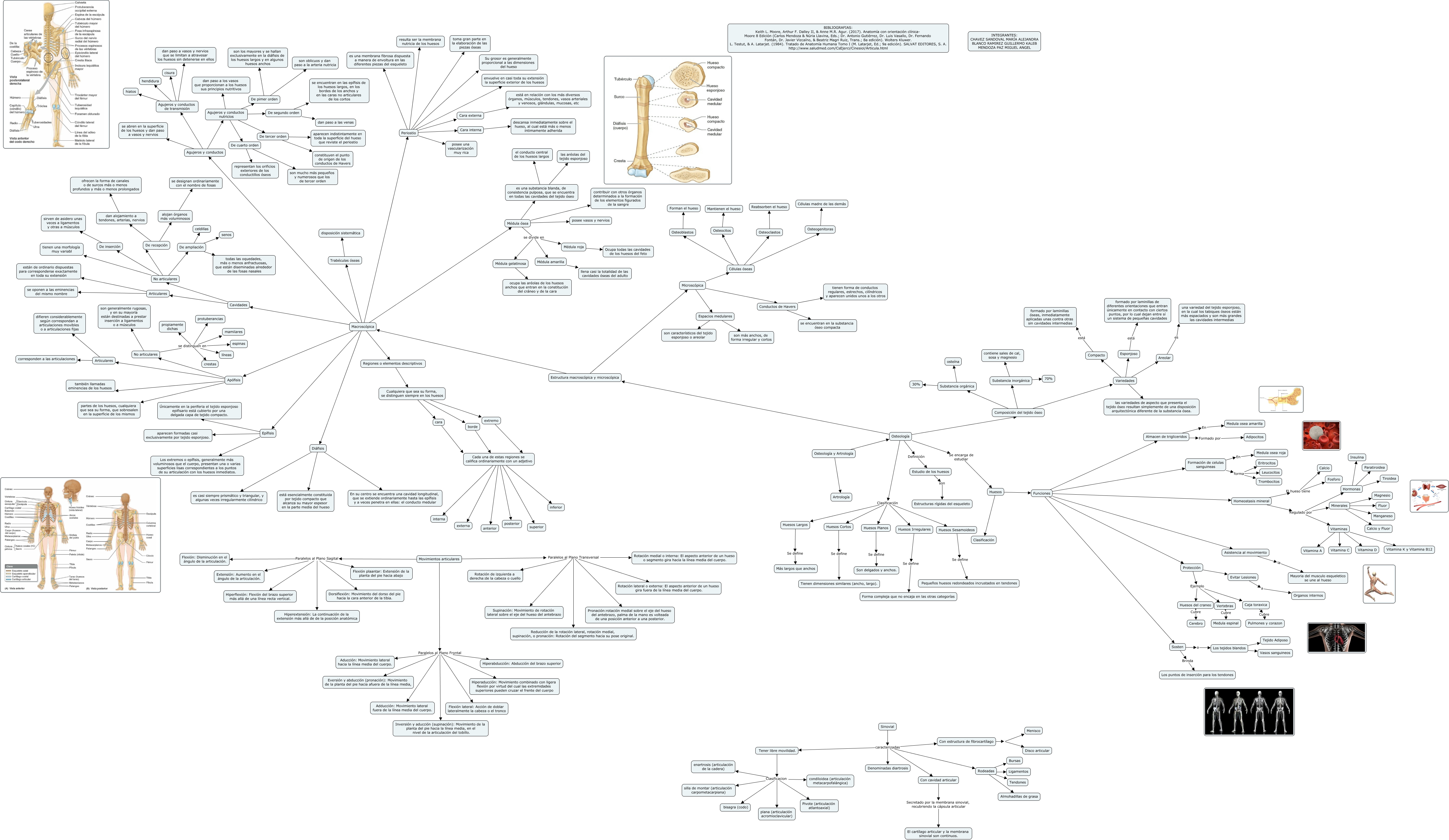 Este Cmap, tiene información relacionada con: Osteología y Artrología, Formación de celulas sanguineas forma Leucocitos, Periostio es una membrana fibrosa dispuesta a manera de envoltura en las diferentes piezas del esqueleto, Regiones o elementos descriptivos Cualquiera que sea su forma, se distinguen siempre en los huesos, Homeostasis mineral Regulado por Minerales, Huesos Funciones, Formación de celulas sanguineas forma Trombocitos, es una substancia blanda, de consistencia pulposa, que se encuentra en todas las cavidades del tejido óseo el conducto central de los huesos largos, Variedades las variedades de aspecto que presenta el tejido óseo resultan simplemente de una disposición arquitectónica diferente de la substancia ósea., Médula ósea es una substancia blanda, de consistencia pulposa, que se encuentra en todas las cavidades del tejido óseo, De cuarto orden son mucho más pequeños y numerosos que los de tercer orden, Tener libre movilidad. Clasificacion plana (articulación acromioclavicular), Agujeros y conductos de transmisión hendidura, Agujeros y conductos nutricios De cuarto orden, De tercer orden aparecen indistintamente en toda la superficie del hueso que reviste el periostio, Vitaminas Vitamina D, Macroscópica Trabéculas óseas, Asistencia al movimiento la Mayoria del musculo esqueletico se une al hueso, Movimientos articulares Paralelos al Plano Sagital Hiperflexión: Flexión del brazo superior más allá de una línea recta vertical., Movimientos articulares Paralelos al Plano Transversal Supinación: Movimiento de rotación lateral sobre el eje del hueso del antebrazo, Huesos Cortos Se define Tienen dimensiones similares (ancho, largo).